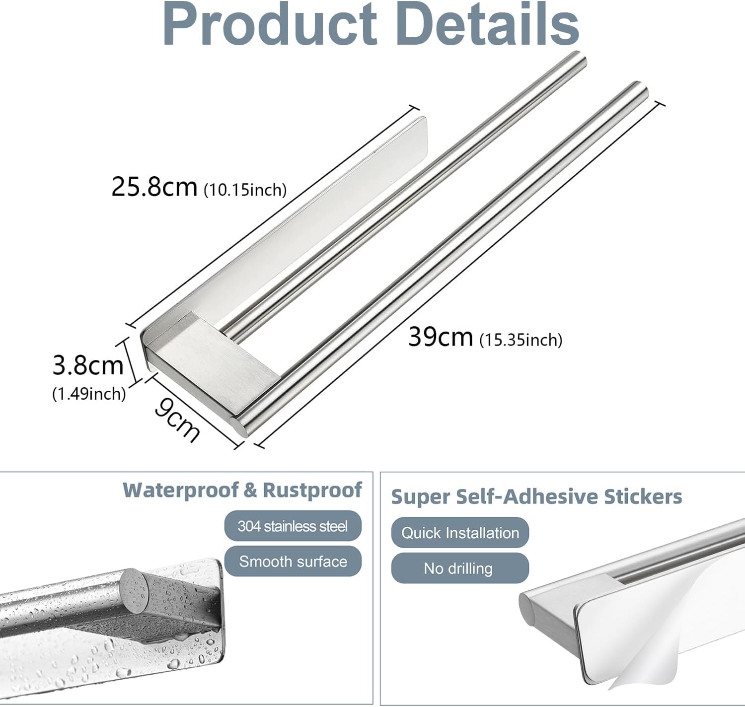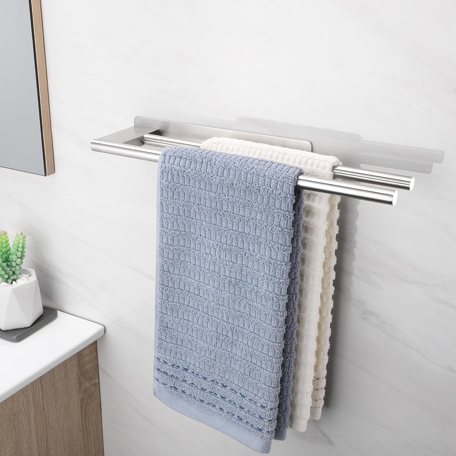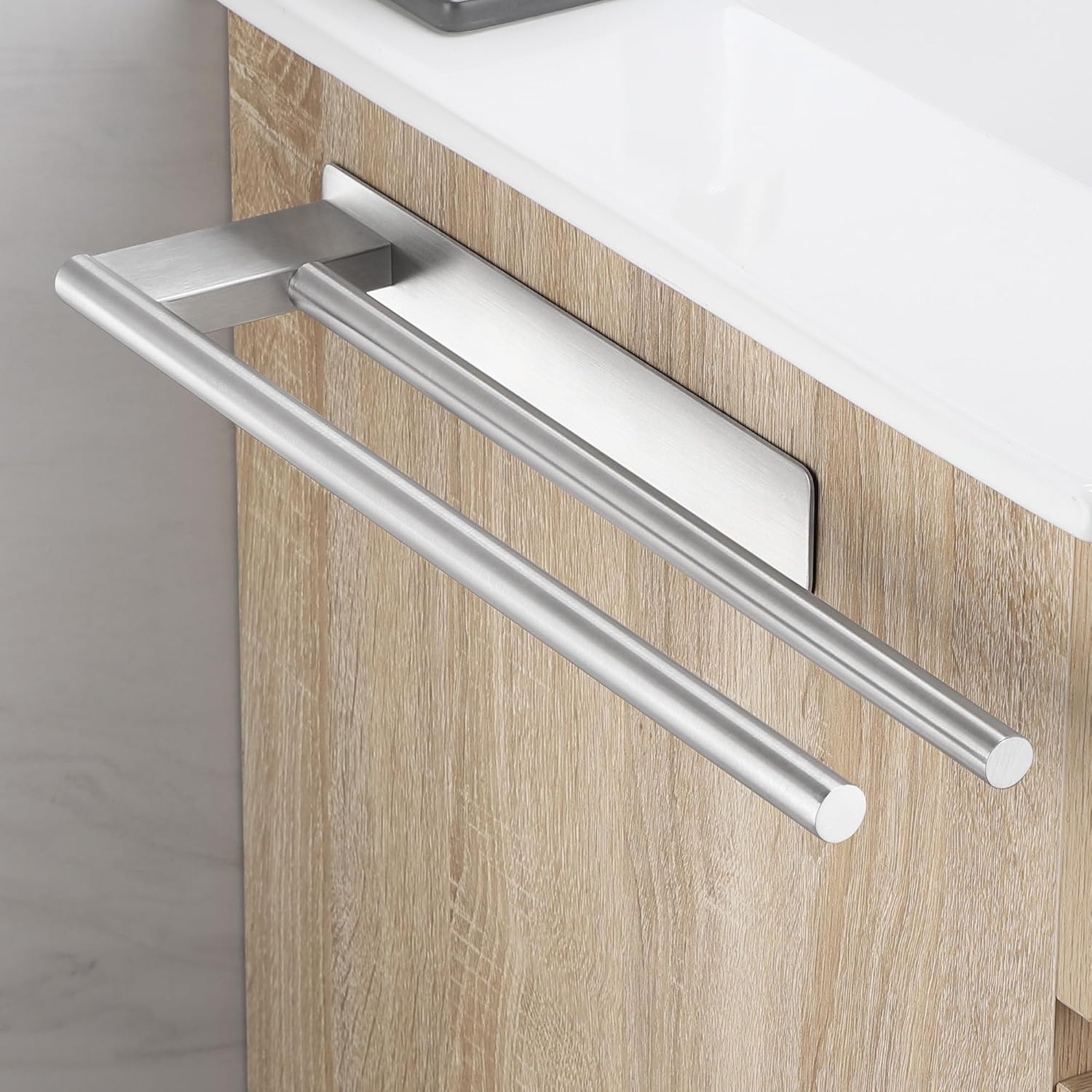 OETAMS Handtuchhalter Ohne Bohren Silber Doppelt Selbstklebend Handtuchstange Zweiarmig Badetuchhalt