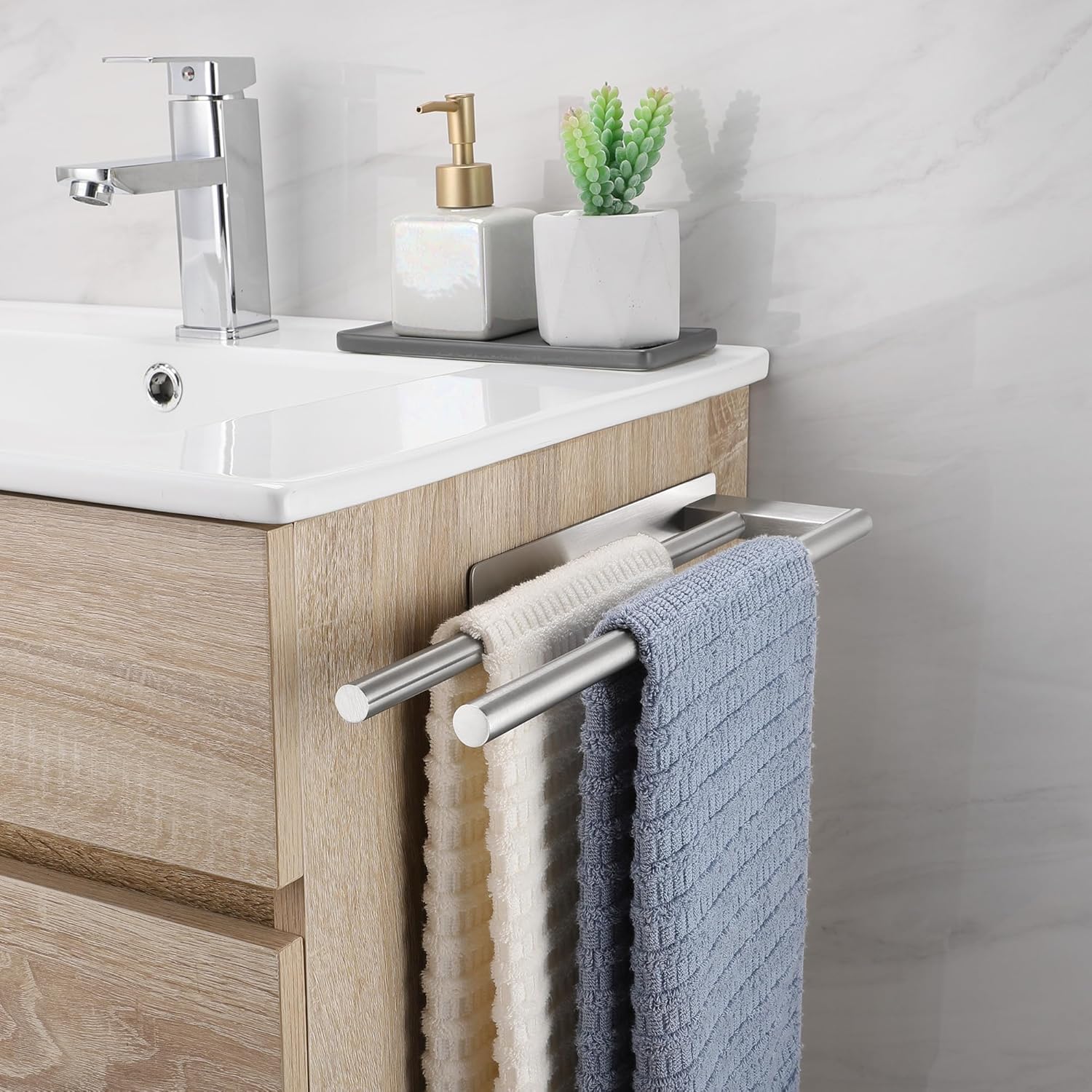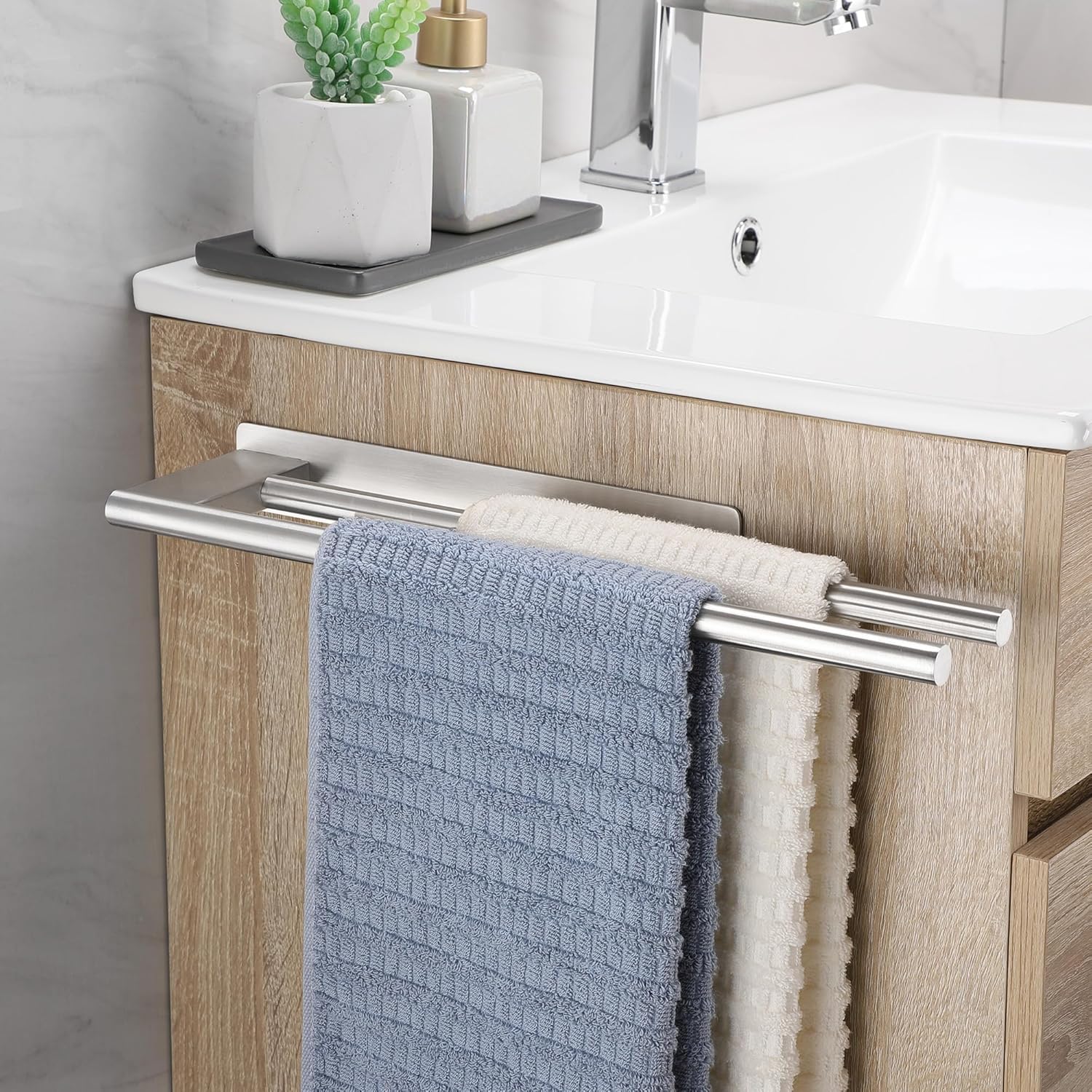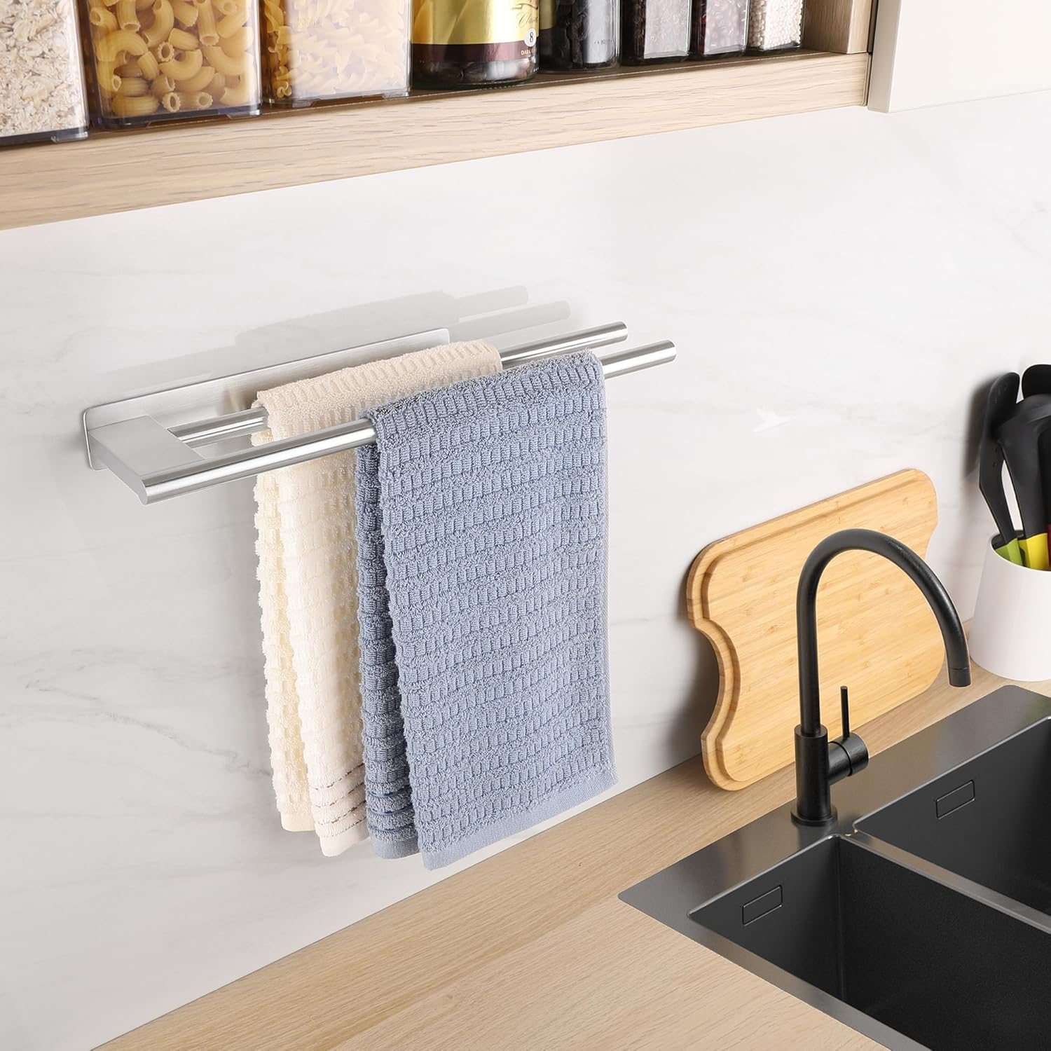 OETAMS Handtuchhalter Ohne Bohren Silber Doppelt Selbstklebend Handtuchstange Zweiarmig Badetuchhalt