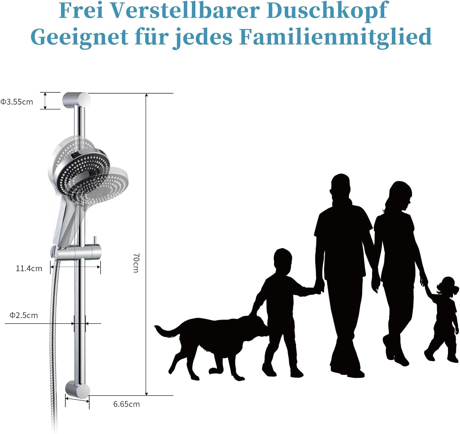 - [Verstellbare Duschstange mit Brause]Die 68cm Duschstange mit Brause, Installationsabstand kann nach Belieben zwischen 38-66cm eingestellt werden,Keine neuen Löcher erforderlich,macht es einfach, die Handbrause Höhe einzustellen, kann der Schieber