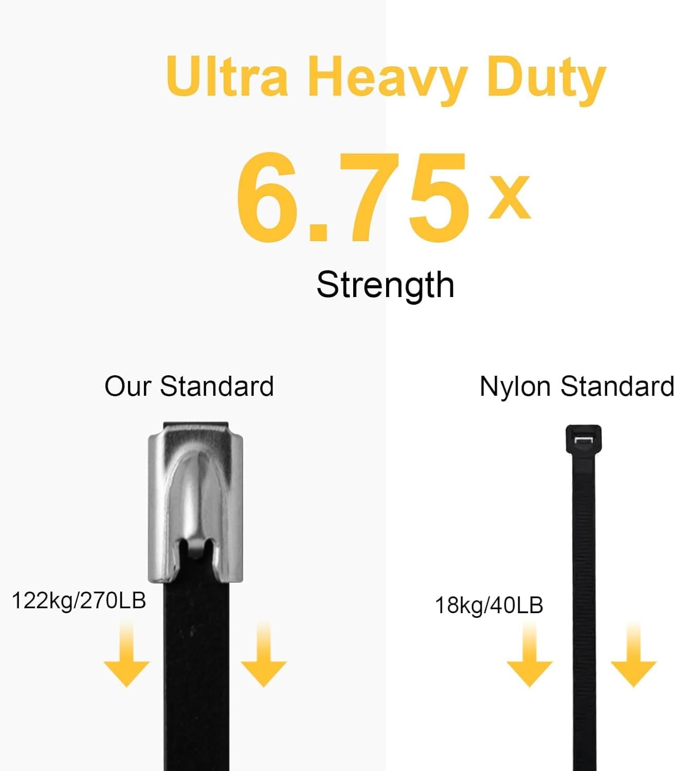 • [Premium-Edelstahl-Kabelbinder] Der Edelstahl-Kabelbinder ist aus Edelstahl 304 gefertigt und verfügt über eine ausgezeichnete Säure- und Laugenbeständigkeit, Abriebfestigkeit und Alterungsbeständigkeit.