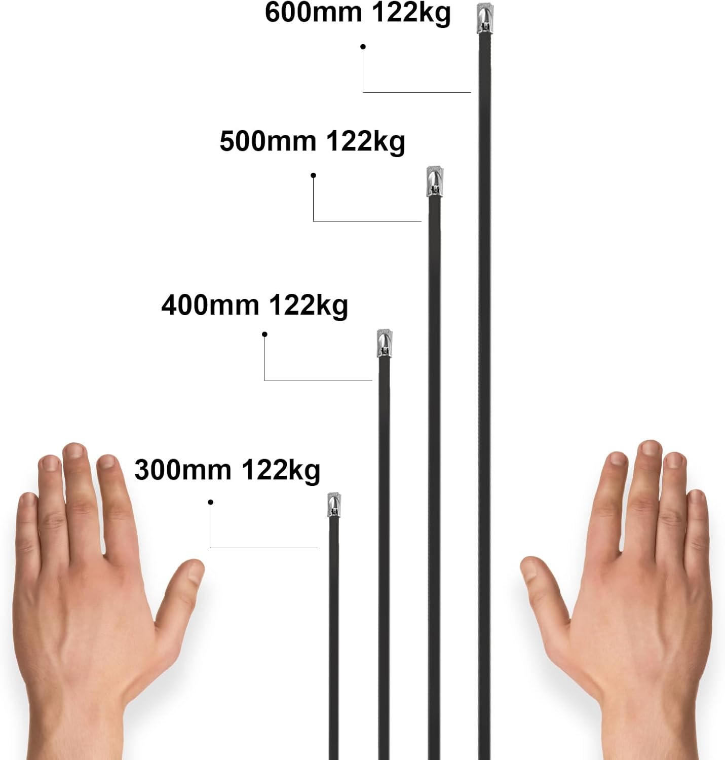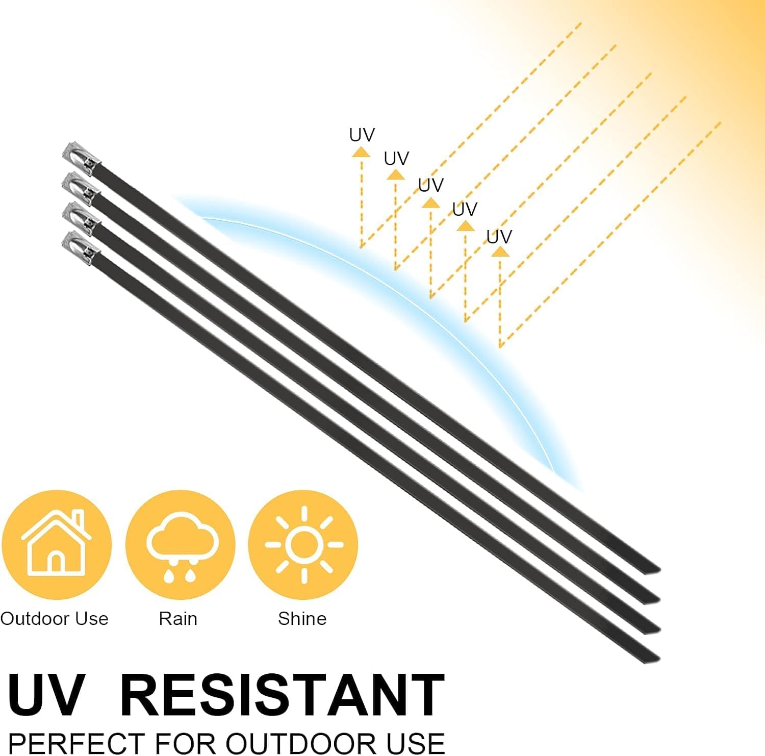 OFFO Edelstahl Kabelbinder, 100 Stk.,Kabelbinder Metall Rostfrei 400mmx4,6 mm,Kabelbinder Schwarz UV