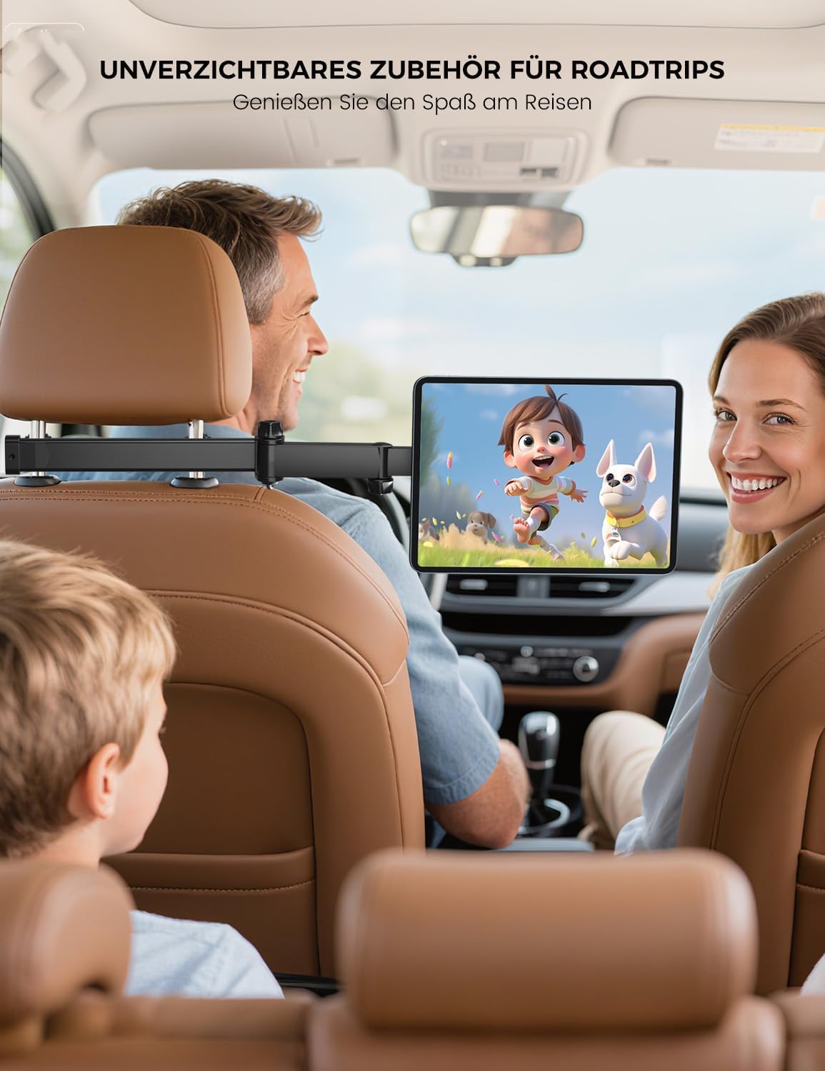 - 【Länger Teleskoparm】Der Teleskopstützarm, kann auf 26 cm/10.24 zoll verlängert, Tablethalterung Kopfstütze Auto kinder es Ihnen, den besten Abstand zwischen dem iPad und den Augen frei einzustellen. Sie können das Tablet in der Mitte von zwei