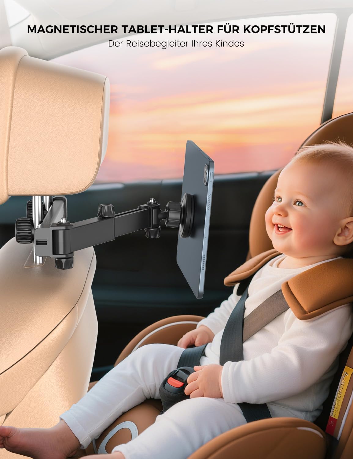 - 【360°Drehen & Einstellen】 Dieser magnetisches tablethalterungen auto passt sich präzise an verschiedene Sitzpositionen und Blickwinkel an, egal ob Sie Filme schauen, Bücher lesen oder Spiele spielen. Das 360°-Kugelgelenk ermöglicht freie