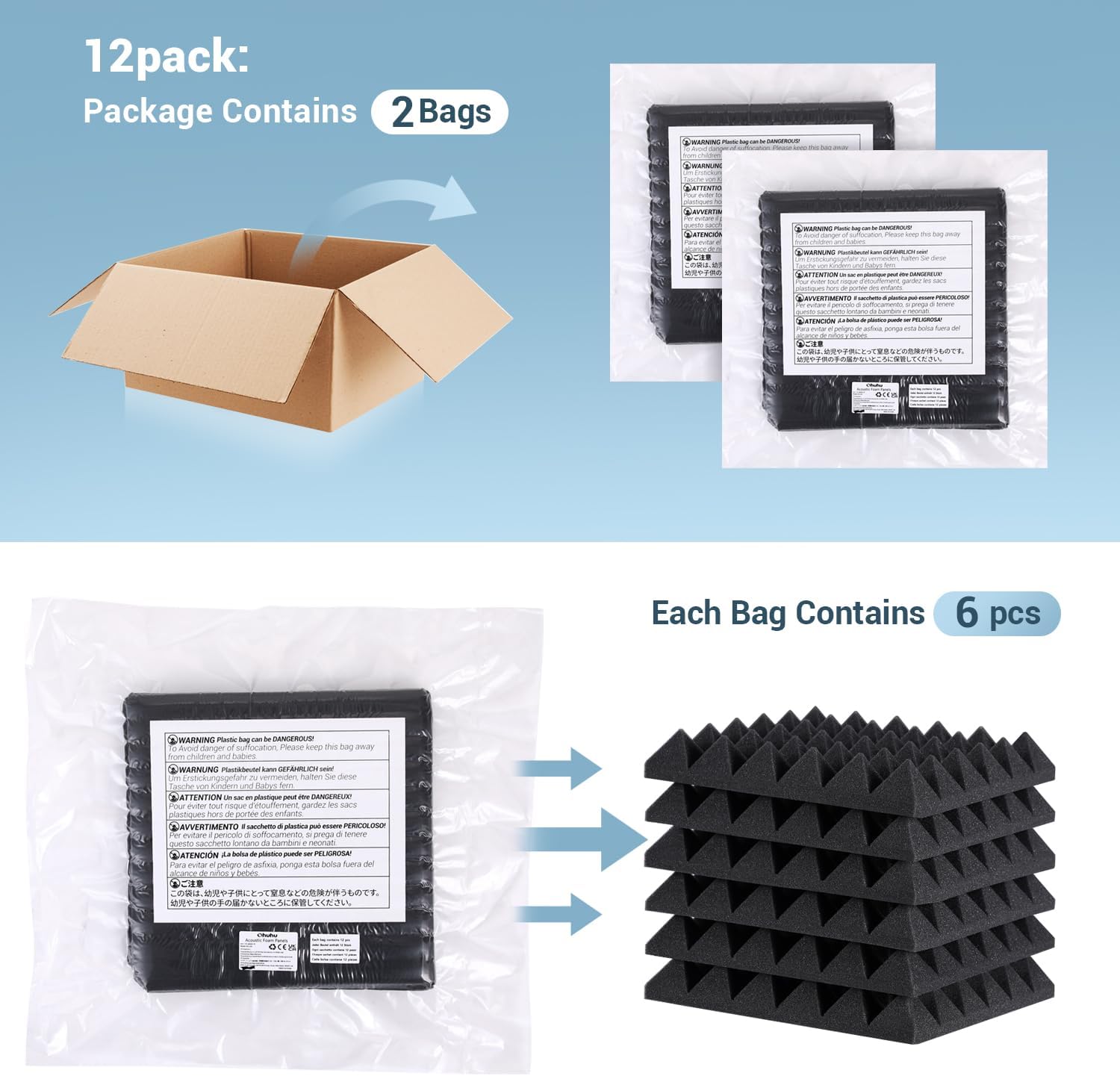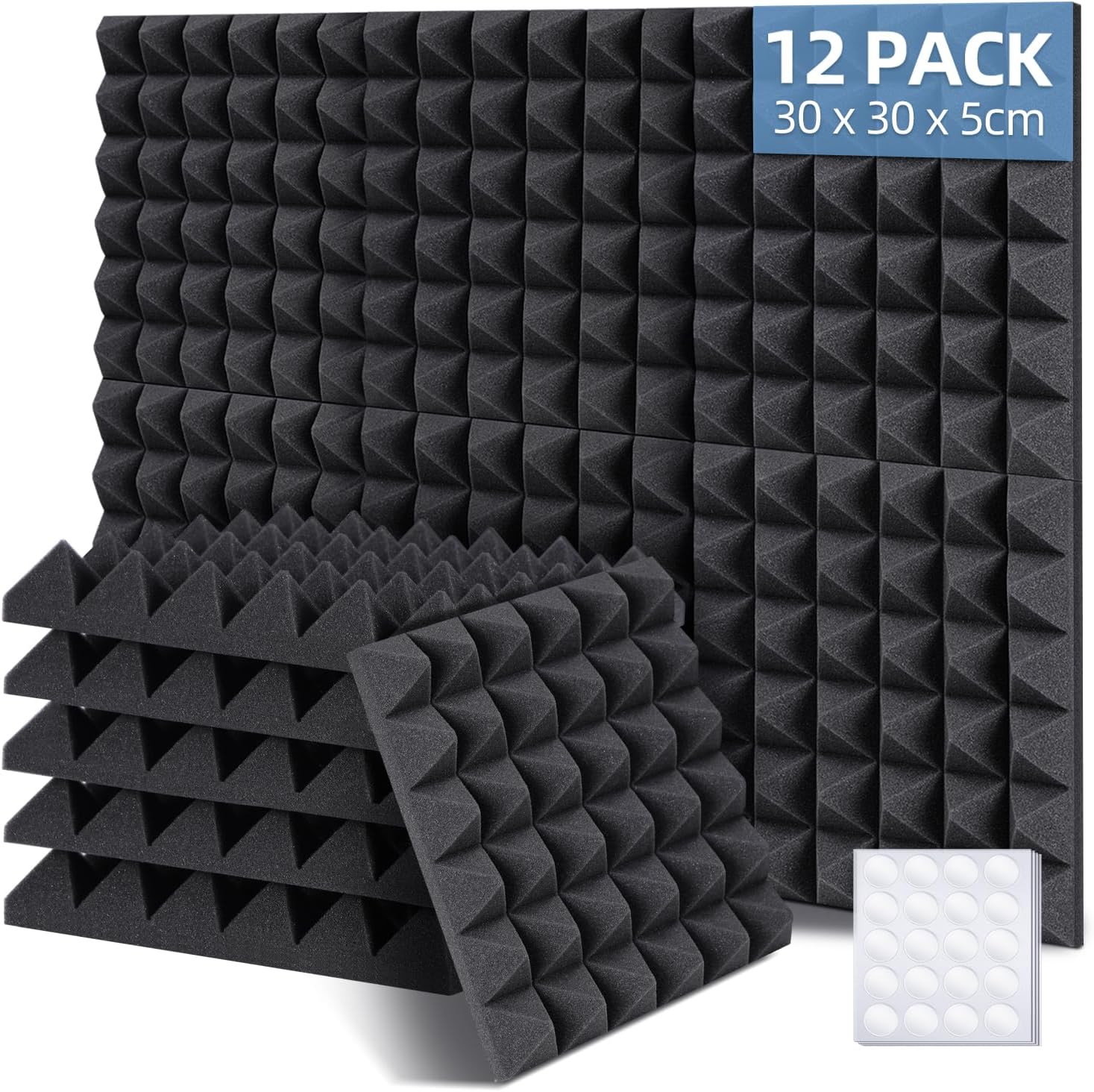 Ohuhu Akustikschaumstoff Akustikpaneele 12 Stück mit Aufkleber, Schalldämmung Wand Schallabsorber Ak