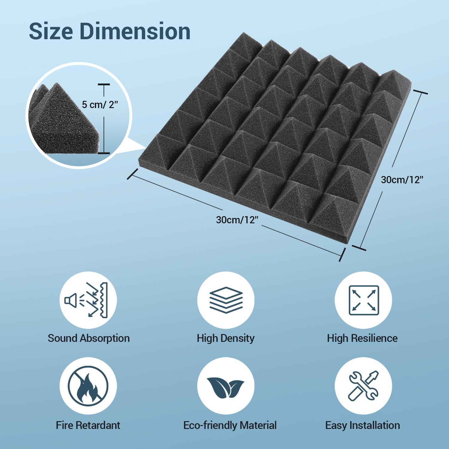 • 【Exzellente SchalldäMmung】Die 5 cm dicken Akustikplatten sind für die Schallabsorption und -isolierung konzipiert. Die 5 cm dicke Pyramidenoberfläche vergrössert die Kontaktfläche mit den Schallwellen, um zu verhindern, dass der Schall im ganzen