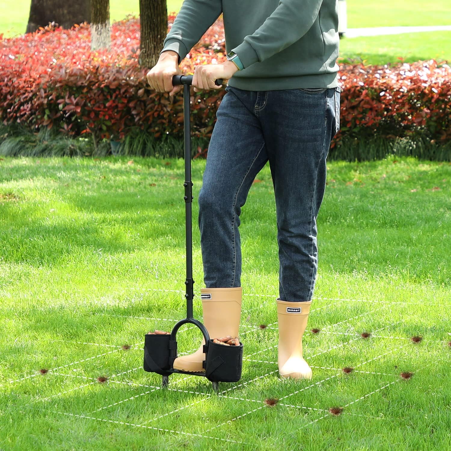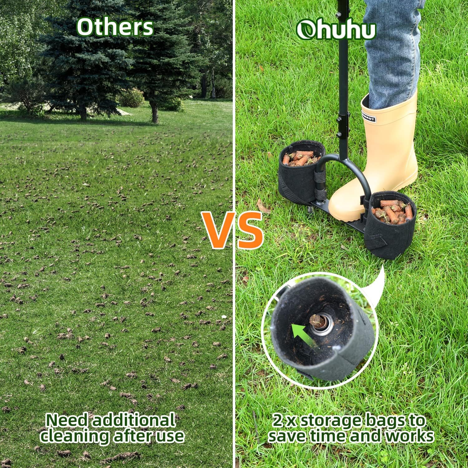 - Beleben Sie Ihren Rasen: Der Ohuhu Rasenlüfter stösst jeweils zwei zylindrische Kerne aus, die Löcher mit einer beträchtlichen Länge (6-7 cm) und einem grossen Durchmesser (1,1 cm) erzeugen und so dazu beitragen, verdichteten Boden zu reduzieren,