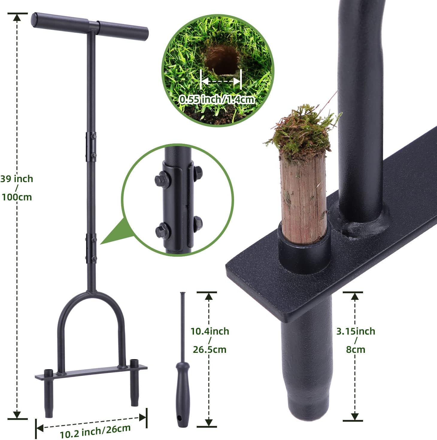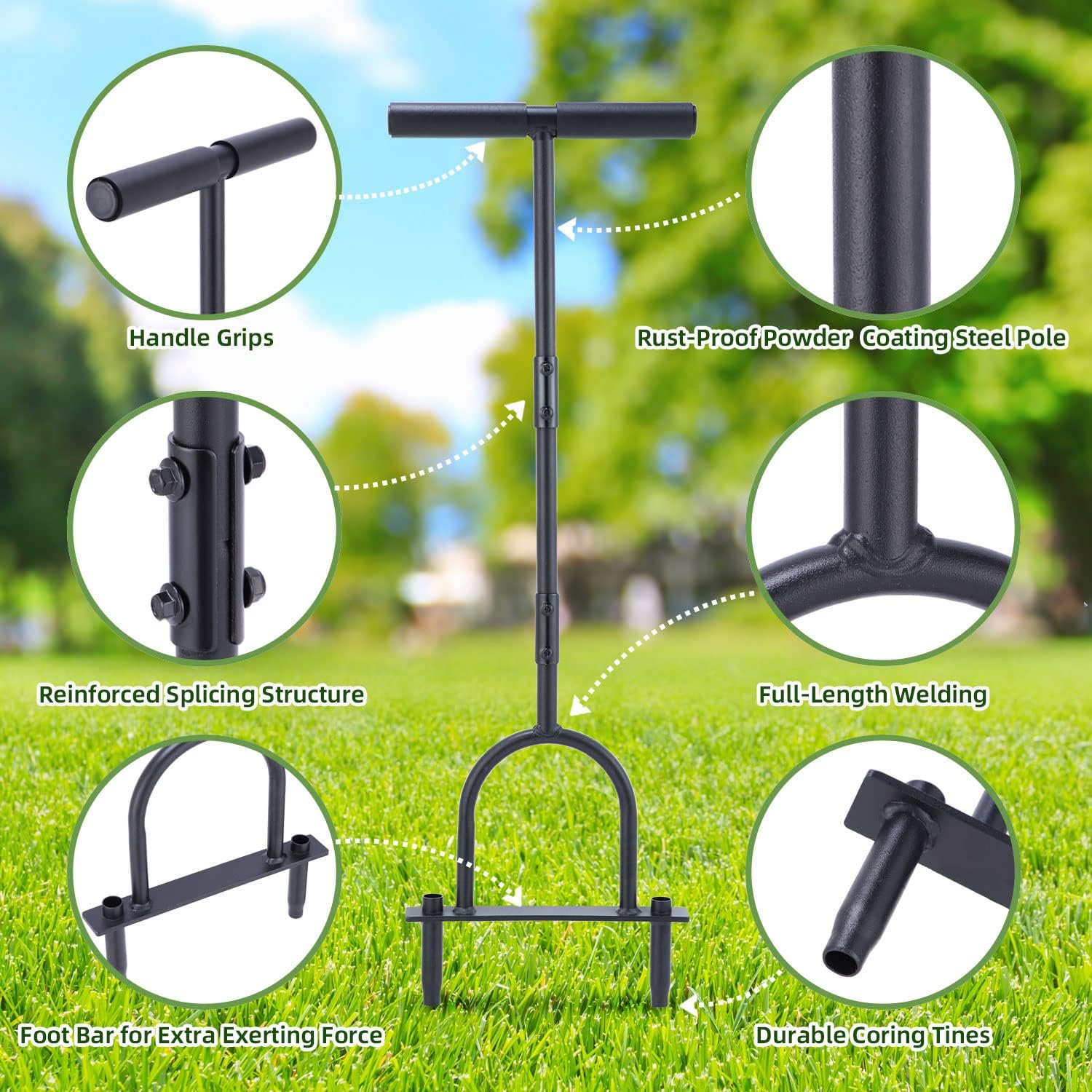 - Bonus-Reinigungswerkzeug: Befreien Sie sich von der lästigen Reinigung dank des mitgelieferten Kernentfernungsstabs! Jedes Mal, wenn Sie mit dem Aerifizierer fertig sind, drücken Sie die Erdpfropfen in den Stacheln mit dem robusten Kernentfernungsstab