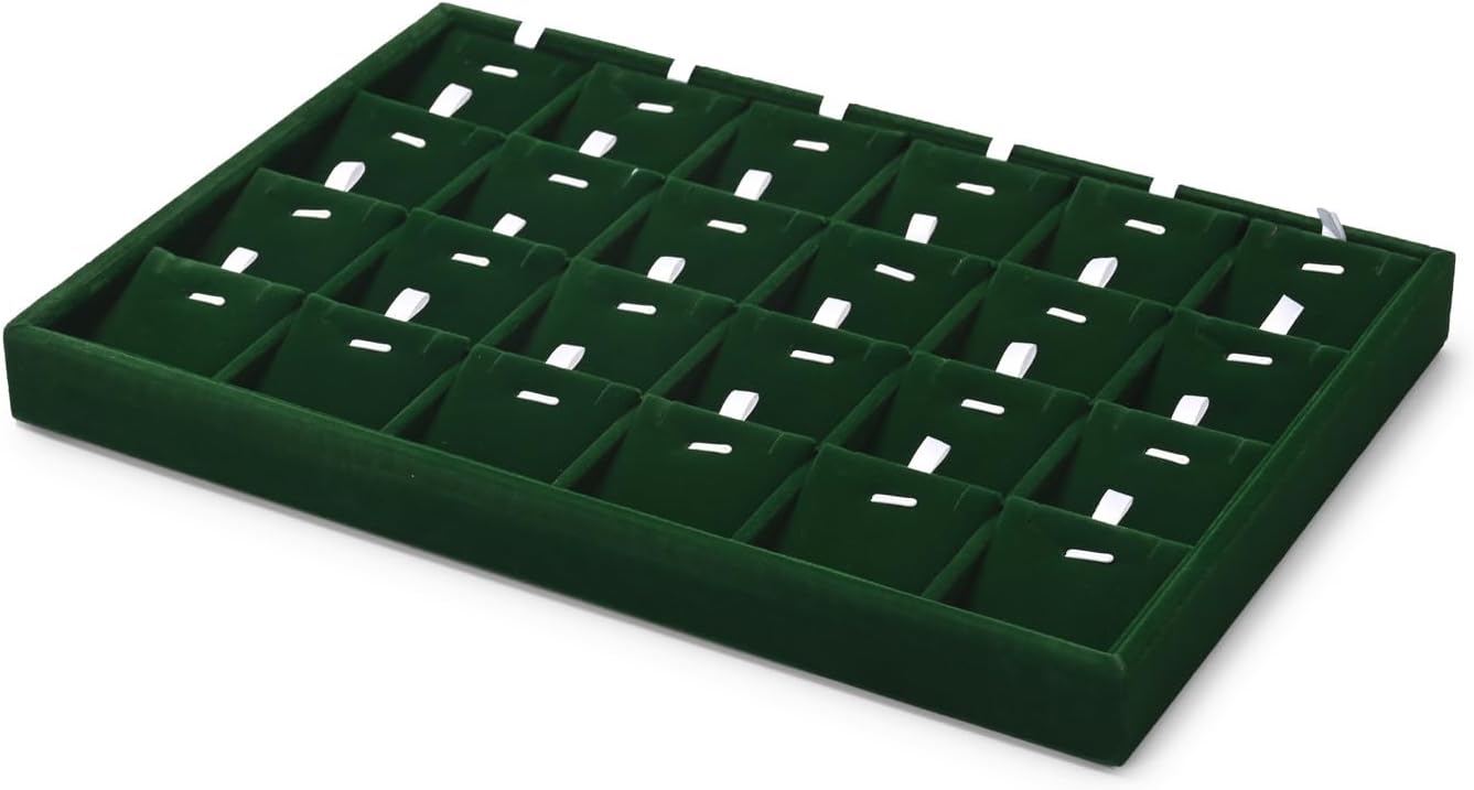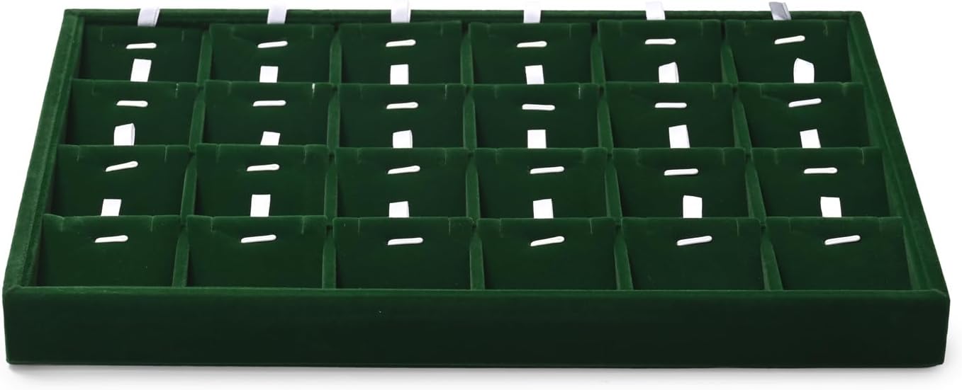 Oirlv Jahrgang Grün Samt 24 Gitter Anhänger Ohrring Schmuckaufbewahrung,Schmucktablett Organizerblet