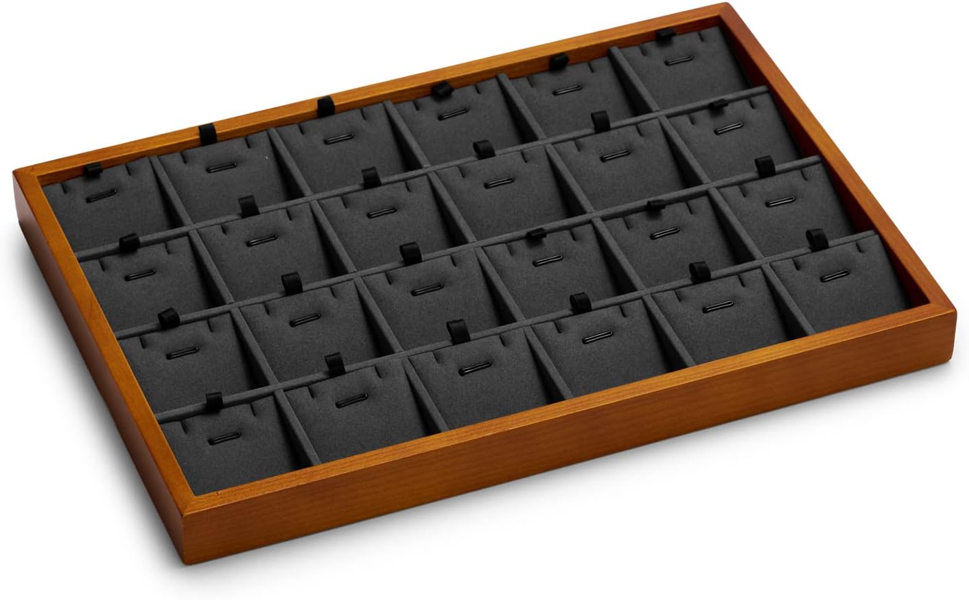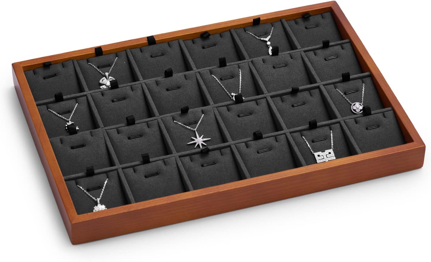 • ★Massivholz 24 Gitter Schmucktabletts,Masse: 35 x 24 x 3 cm (L x B x H),jedes Fach 6 x 5 cm.Jedes Schmuckpad kann entfernt werden. 1 Stück, Schmuck nicht enthalten.
