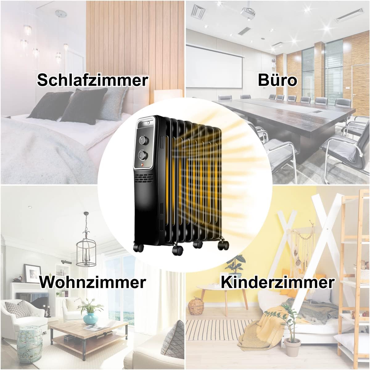 - ✅ Masse (aufgebaut): L 40,5 x B 24 x H 63,5 cm (inkl. Schienen der Laufrollen) | Gewicht: 8.75 kg | Länge des Stromkabels: 150 cm | Anzahl der Rippen: 9 | Anzahl der Ölleitungen: 5