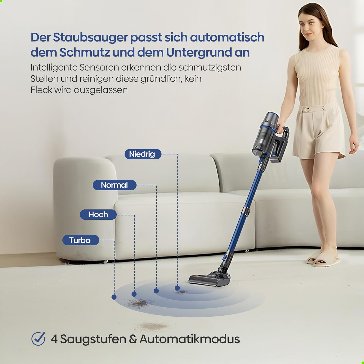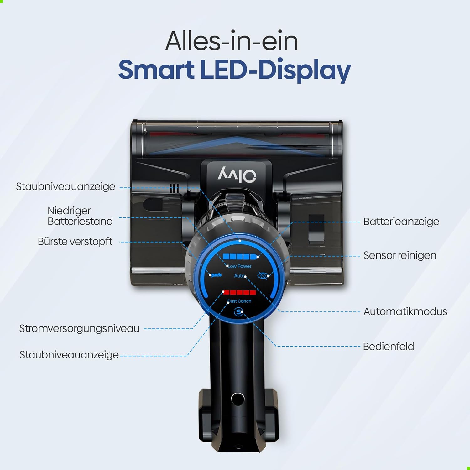 - INTELLIGENTE AUTO-MODUS & LED DISPLAY: Der kabellose Staubsauger passt die Saugleistung automatisch an den Verschmutzungsgrad an – mit Touchscreen-Steuerung und LED-Licht zur Erkennung von verstecktem Staub.