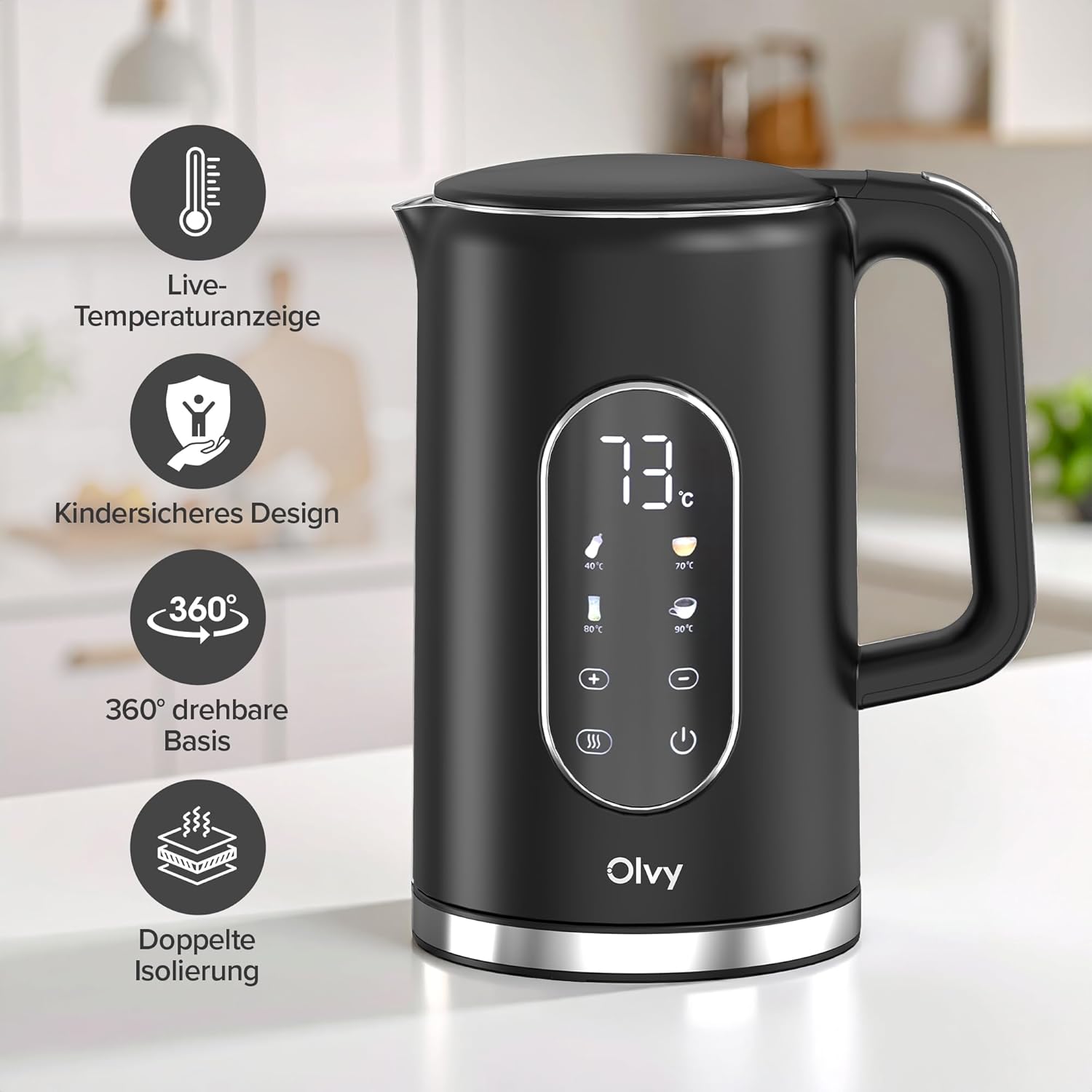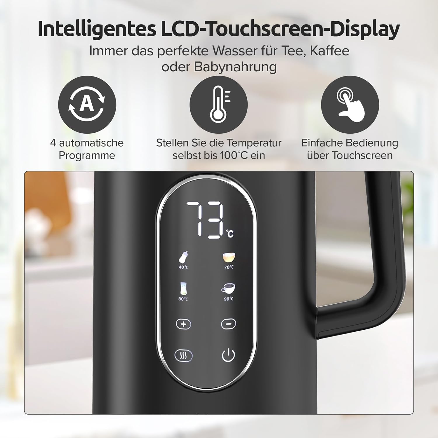 - 【Warmhaltefunktion für Bequemlichkeit】 Hält Ihre gewählte Temperatur für bis zu 2 Stunden, sodass Sie immer heisses Wasser bereit haben, ohne nachkochen zu müssen. Spart Zeit und Energie im täglichen Gebrauch.