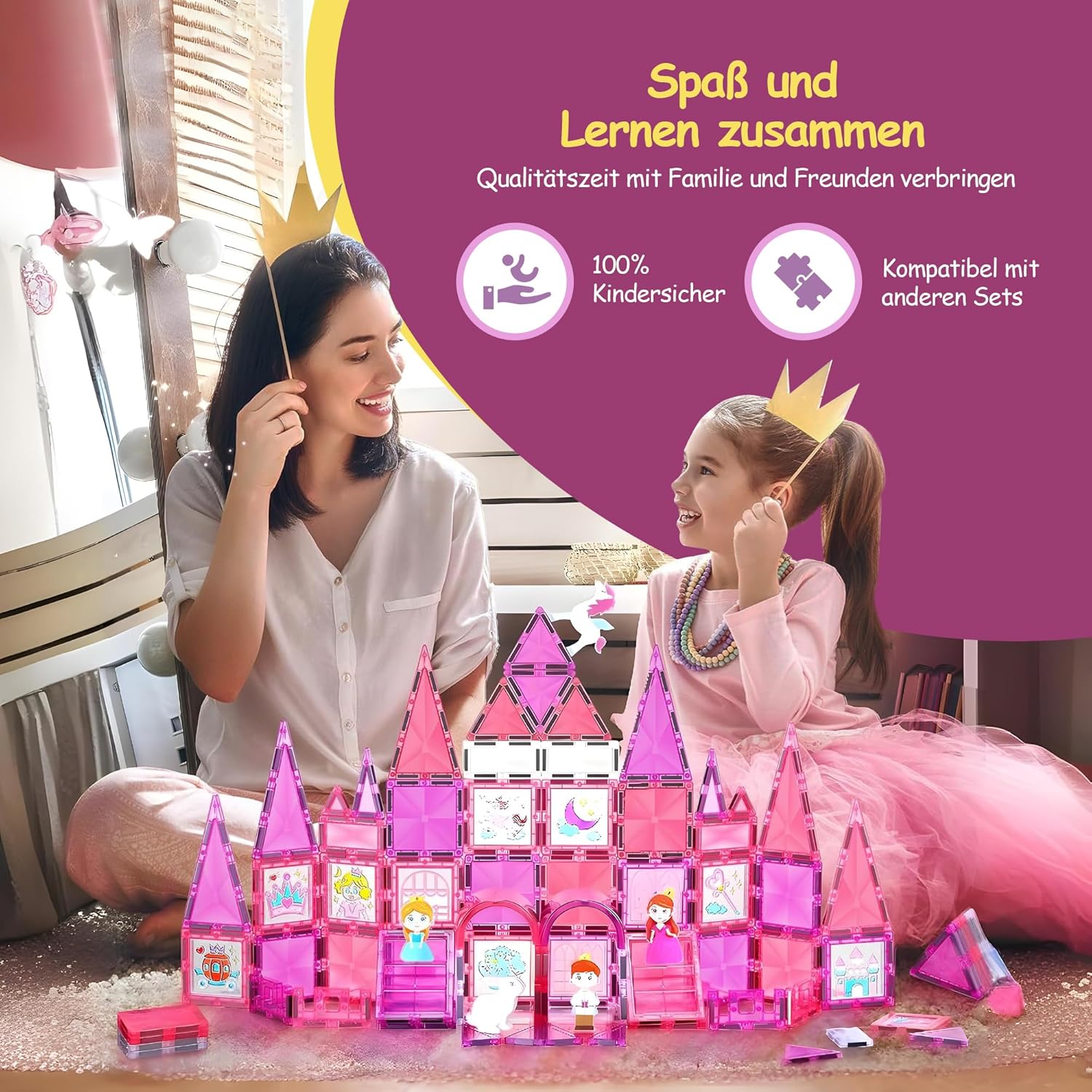 • FÖRDERUNG DER KREATIVITÄT UND MOTORIK: Magnetische Bausteine fördern Kreativität, Problemlösung und Feinmotorik, während Kinder spielerisch Farben, Formen und Zahlen entdecken.