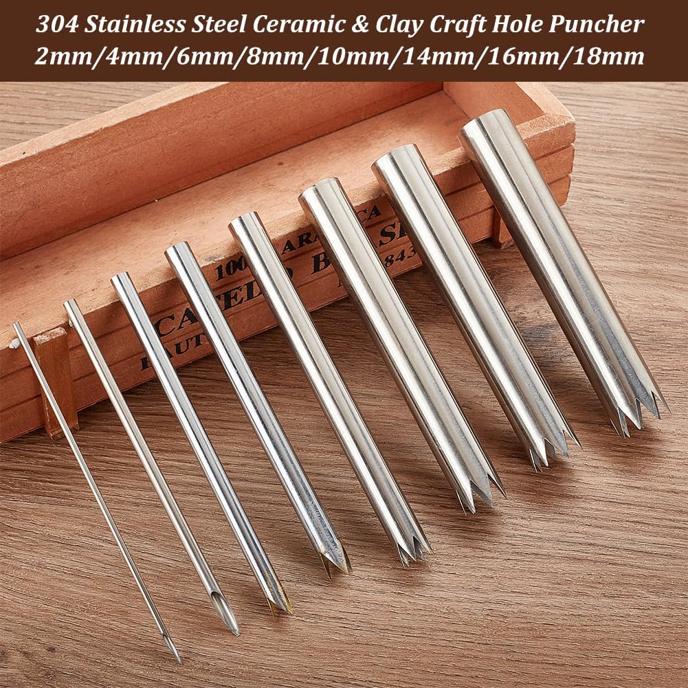 • Grösseninformation--Unser Keramik-Ton-Bastellocher aus Edelstahl ist etwa 109~116mm lang, Der Durchmesser beträgt 2mm, 6mm, 4mm, 8mm, 10mm, 14mm, 16mm, 18mm 8 verschiedene Grössen, die Ihrem Leben Bequemlichkeit bringen können.