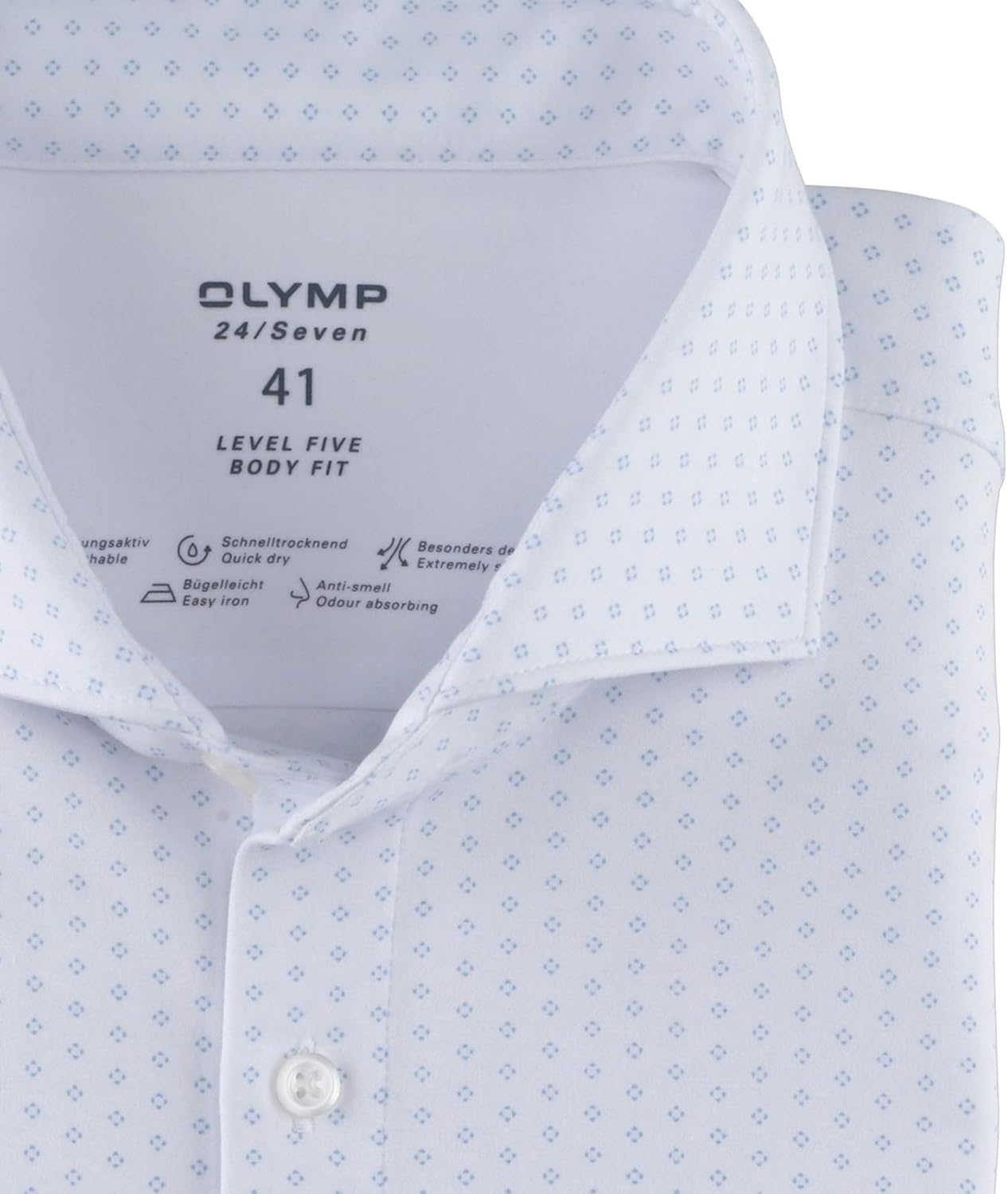 OLYMP Herren Businesshemd Level Five 24/Seven,Body fit,Haifisch-Kragen 45 Weiss 00, 45 Weiss 00