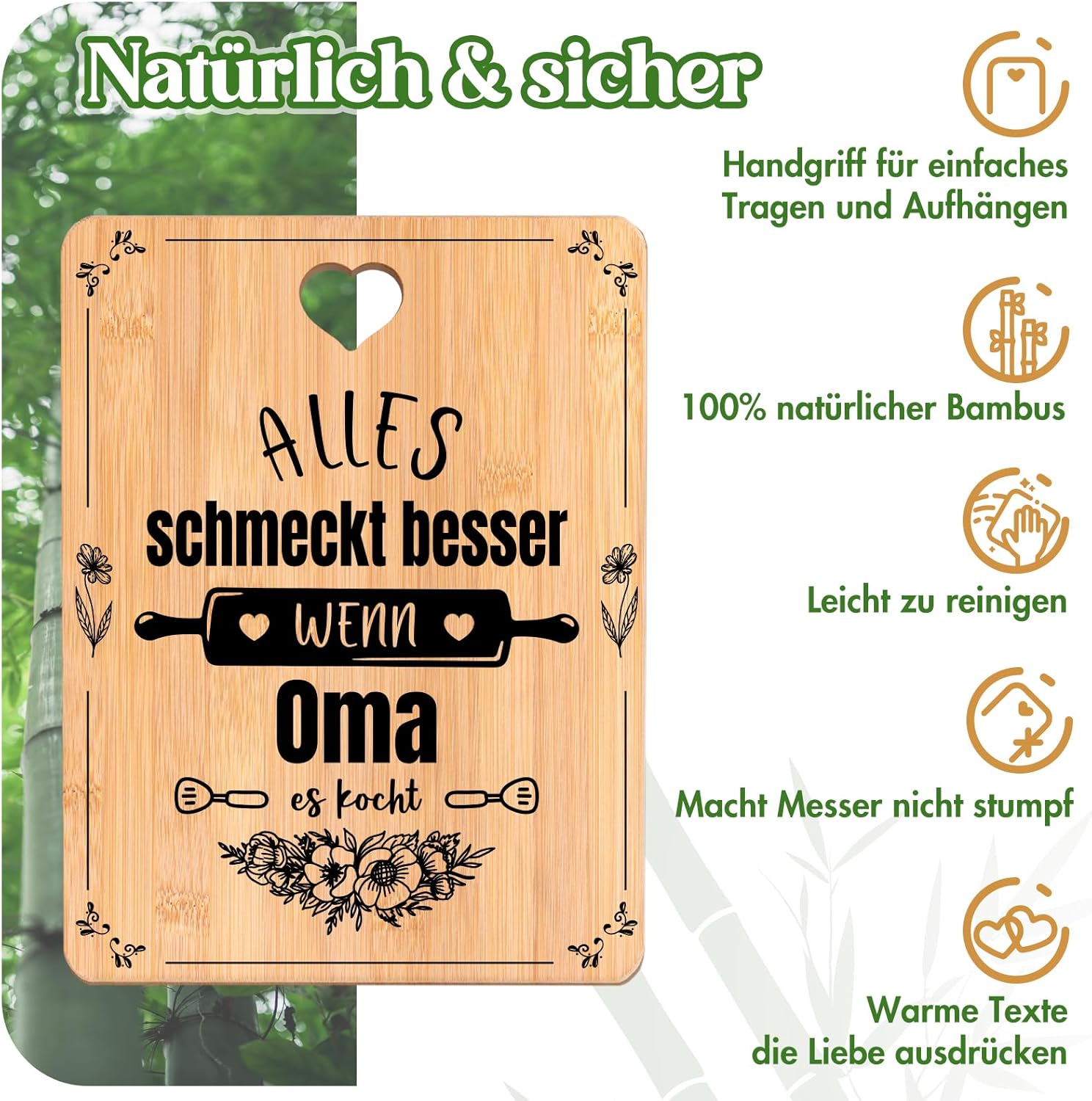 - Beste Oma Geschenke: Unsere Bambus Schneidebretter sind ein durchdachtes und praktisches Geschenk für Omas, die gerne kochen. Das beste Geburtstagsgeschenk, Muttertagsgeschenk oder Weihnachtsgeschenk für Oma von Enkelkindern. Zeigen Sie Ihre