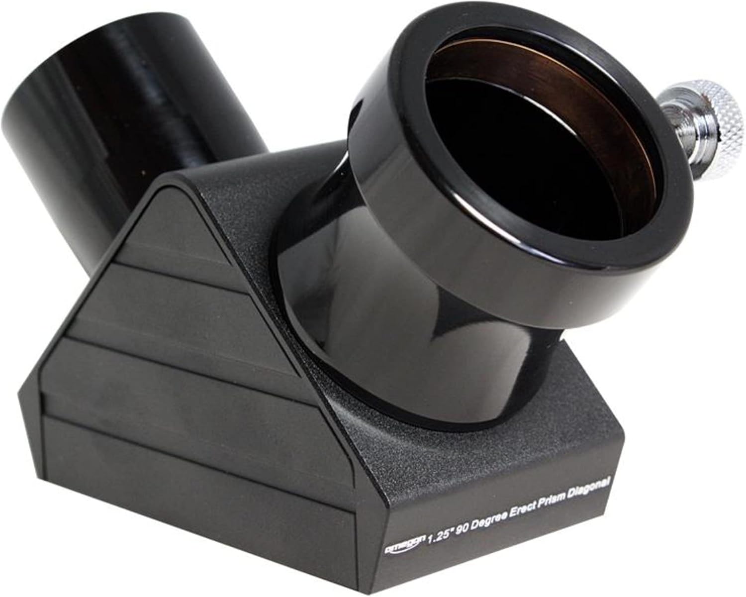 PRODUKTBESCHREIBUNGEN Mit dem Omegon90° Amiciprisma machen Sie aus Ihrem astronomischen Teleskop ganz einfach ein Fernrohr für Naturbeobachtungen! In astronomischen Teleskopen werden die Bilder auf dem Kopf stehend abgebildet. Was bei Beobachtungen des Sternenhimmels kein Problem ist, wird jedoch bei der Naturbeobachtung zur grossen Schwierigkeit. Das Omegon 90° Amiciprisma bietet die passendeLösung. Es richtet auf dem Kopf stehende Bilder wieder auf und stellt sie seitenrichtig dar. Dem Beobachter wird zusätzlich ein 90° Winkeleinblick geboten, der einen sehr angenehmenEinblick ermöglicht. Dadurch kann jeder Refraktor oder jedes Schmidt-Cassegrain- oder Maksutov Teleskop auch für die Erdbeobachtung sinnvoll eingesetzt werden. Durch Multivergütungen auf optisch entscheidenden Flächen, wird unerwünschten Reflexen entgegengewirkt und der Durchlass des Lichts erhöht. Das mechanisch hervorragendverarbeitete Gehäuse bietet einen 1,25“ Einsteckdurchmesser mit Filtergewinde und ebenso eine Ringklemmung für die sichere Aufnahme der Okulare.