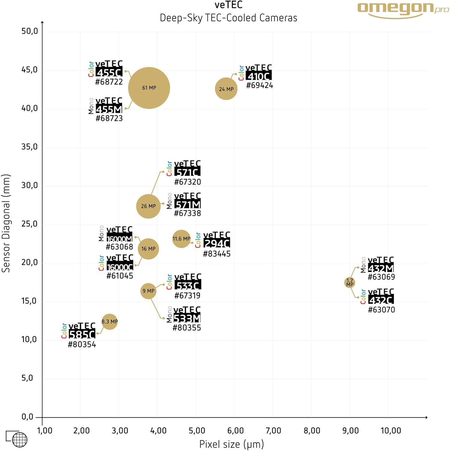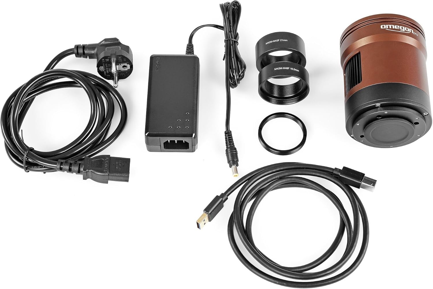 PRODUKTBESCHREIBUNGEN Die Omegon Pro veTEC 533 ist das Nachfolgemodell der beliebten veTEC 16000 Kamera. Der neue quadratische Sony IMX533 Sensor stellt dabei bei gleichbleibender Pixelgrösse (3.8µm) eine enorme Verbesserung dar: - bessere Quanteneffizienz (~80%) - niedrigeres Ausleserauschen (~ 1.3e- @Unity Gain) - höhere Full-Well-Capacity (50.000 e-) - ADC: 14-bit - Zero-Amp-Glow: kein Verstärkerglühen Das Ergebnis sind noch rauschärmere Bilder und ein besserer Dynamikumfang! Wie beim Vorgängermodell ist die Kamera mit einer thermoelektrischen Kühlung zur Minimierung des thermischen Rauschens ausgestattet. Trotz der etwas kleineren Grösse ist der IMX533 Sensor dank seiner quadratischen Form bestens für die Astrofotografie geeignet. Professionelle Deep-Sky Astrofotografie: Der riesige Sensor ist perfekt geeignet für ausgebreitete Nebel, Sternenfelder oder die Mondoberfläche. Im Gegensatz zu den meisten Planetenkameras ist dieser Sensor vergleichbar zu den grosszügig dimensionierten Sensoren in DSLR-Kameras. Thermoelektrische Kühlung: Das Kühlsystem verringert das Bildrauschen. Bei bis zu 40°C unter der Umgebungstemperatur ist das durch den Dunkelstrom verursachte Rauschen fast komplett verschwunden. Ausserdem ist die exakte Kontrolle der Sensortemperatur sehr hilfreich zur Kalibrierung der Astrofotos mit Dark-Frames: Sie können alle bei der richtigen Temperatur aufgenommen werden. Die fertigen Bilder sind eindrucksvoll Rauscharm. USB-Hub: Zwei zusätzliche USB Anschlüsse an der Rückseite der Kamera verringern das Kabelchaos! Zusätzliche Geräte (zum Beispiel eine Guiding-Kamera) können einfach Mehr