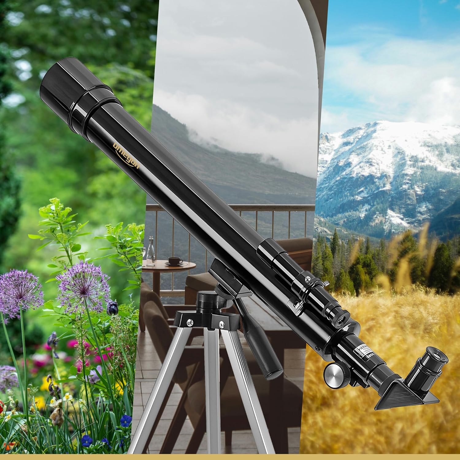 - Lieferumfang: Teleskop, Dreibeinstativ, Sucherfernrohr, 2 Okulare 12,5mm und 20mm (für 30-fache und 48-fache Vergrösserung)