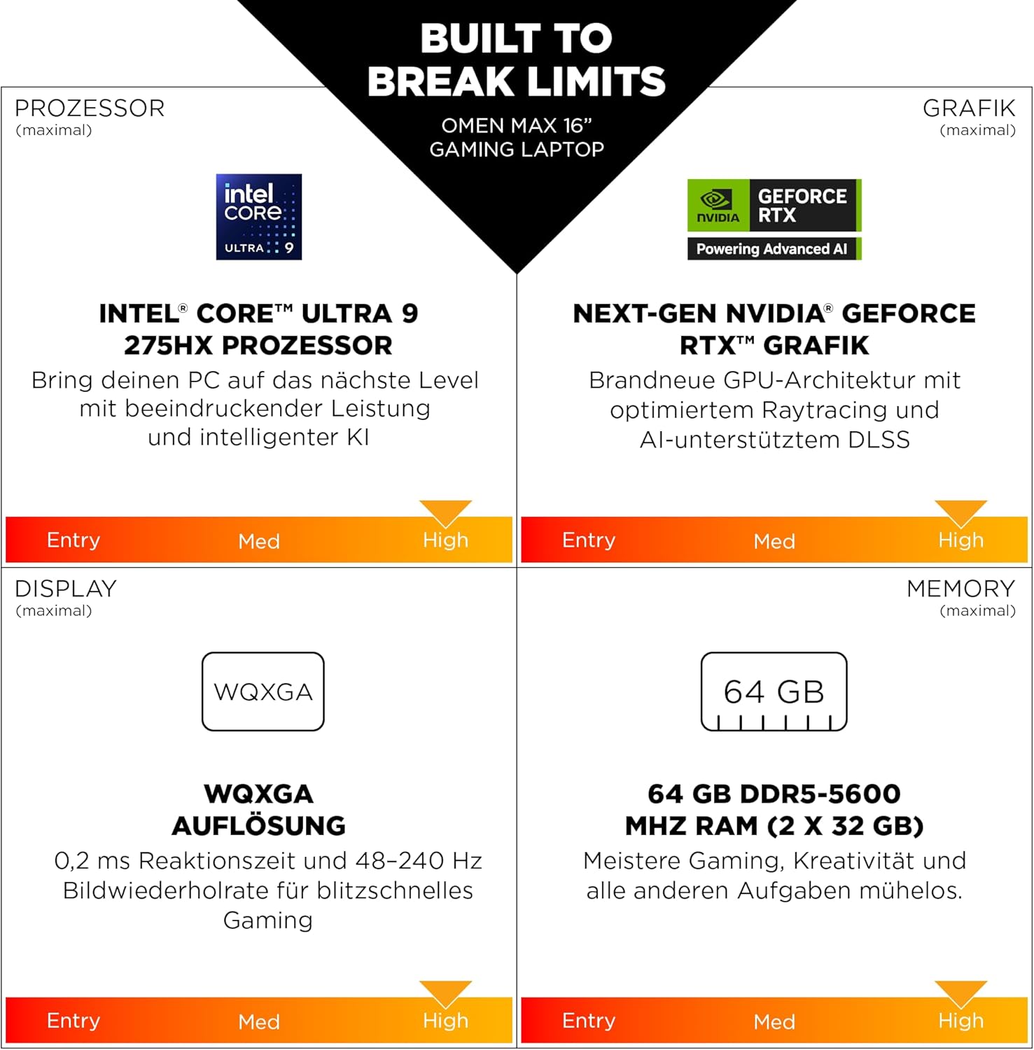 - Das OMEN MAX 16 – OMENs bisher leistungsstärkstes Laptop – ist nicht nur mit den besten Next-Gen-Komponenten ausgestattet, sondern gibt dir auch die Freiheit, sie über ihre Grenzen hinaus zu übertakten – ohne Drosselung oder langfristige