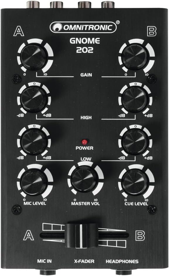 - ⭐️ 2 Stereokanäle mit Gain-Regler und 2-Band-EQ, Anschluss über Cinchbuchsen