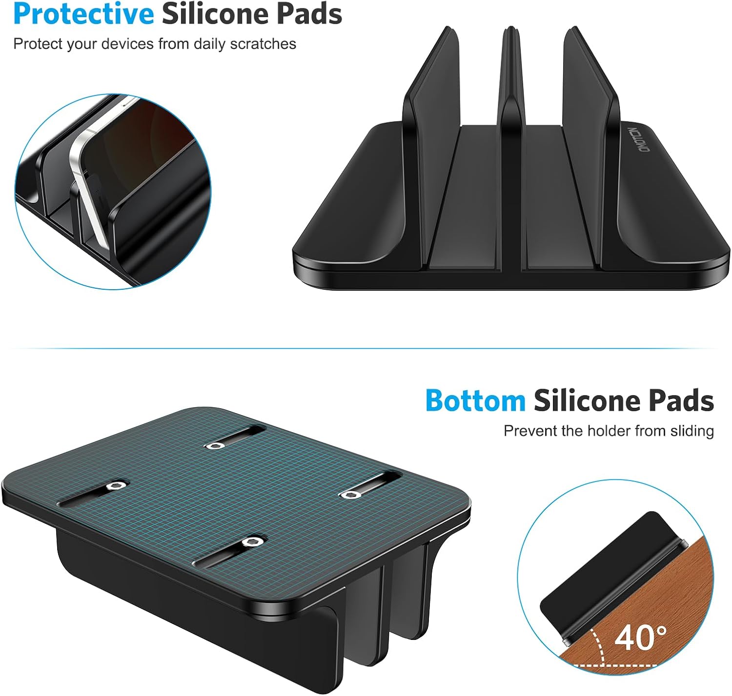 - Schutzmatte: Ungiftige und rutschfeste Silikonmatten von dieser Laptop Halterung bedecken die Laptop-Steckplätze, um Kratzer auf Ihren Geräten zu vermeiden. Rutschfeste Silikonkissen auf der Basis sorgen für Stabilität und Sicherheit