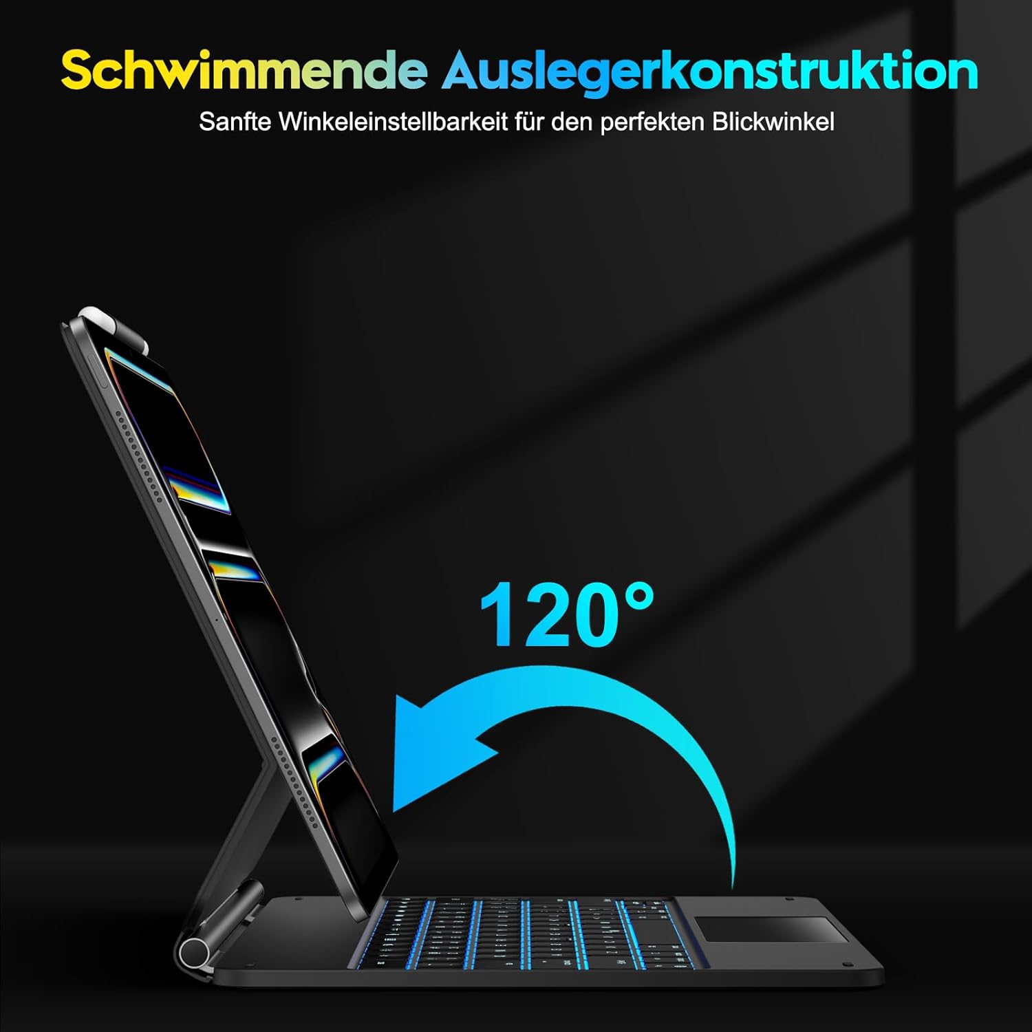 - FLOATING STAND DESIGN - Diese Tastatur Hülle für iPad Pro 13 Zoll M4 2024 ist mit einem schwebenden Ständer ausgestattet, der magnetisch am Gerät befestigt wird, so dass Sie den Betrachtungswinkel stufenlos an Ihre Bedürfnisse anpassen können