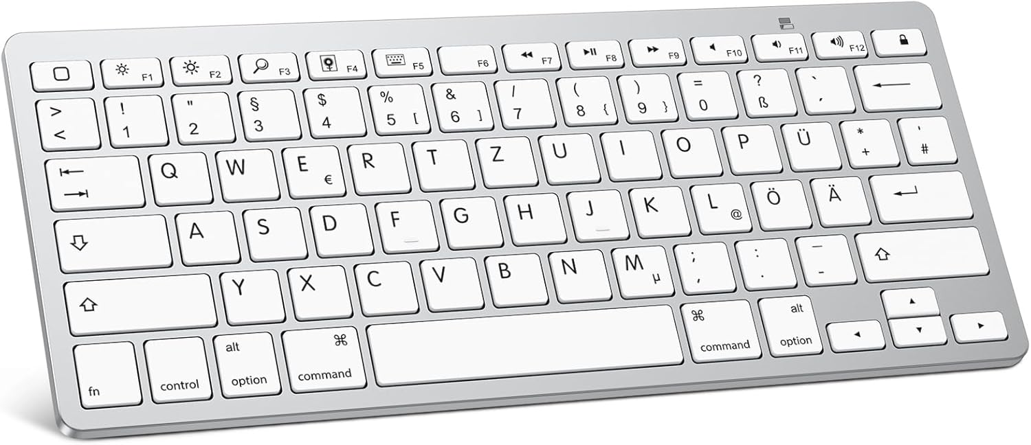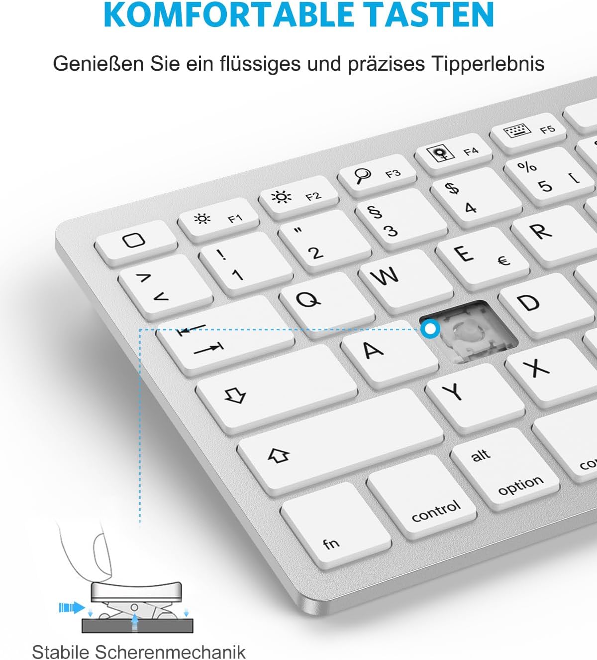 - 1. Kabellose Tastatur : Bluetooth Verbindung mit Gerät wie alles iPad Tablet und iPhone Handy, bietet deshalb mehr Komfort, wenn Sie tippen möchten. Die schnurlose Verbindung ermöglicht ein Arbeiten im gesamten Raum mit bis zu einer Entfernung von 10