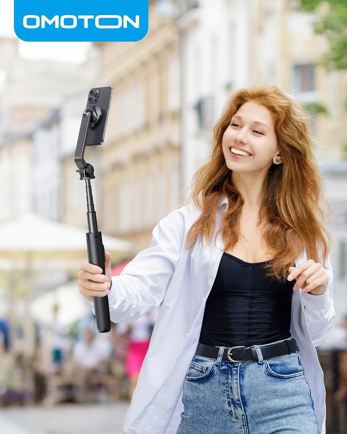 - 【O-Mag Design】Mit hochwertige N52 Magnete kann das Handy leicht am OMOTON Handy Stativ befestigen. Schnelles Switchen zwischen Selfie-Stick-, Tisch- und Stativmodus durch einfaches Drücken oder Ziehen