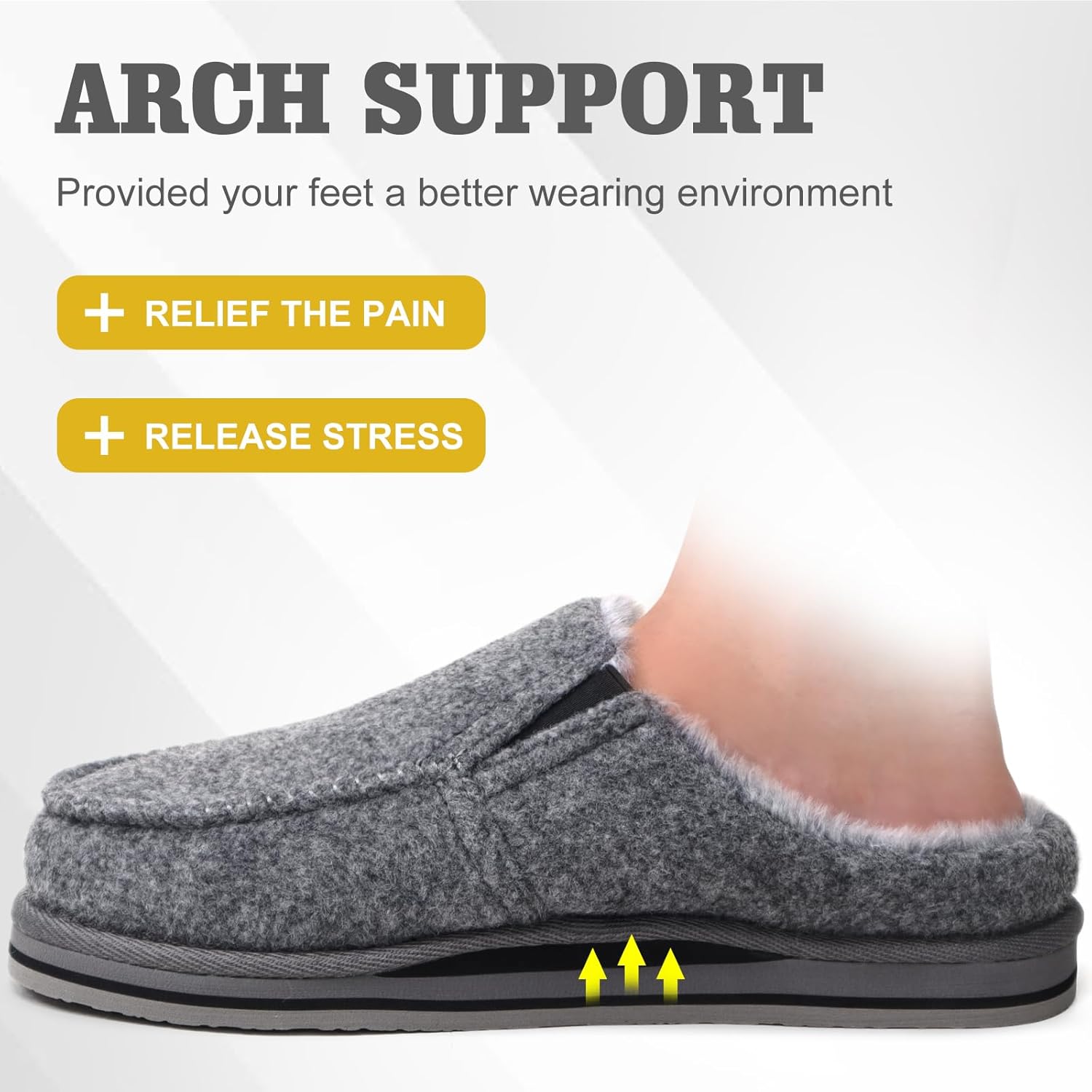 - Fussgewölbestütze: Pantoffeln Herren mit Konturenbogenstütze können Fussschmerzen beim Gehen oder Stehen über einen längeren Zeitraum lindern. Menschen mit hohen Bögen sind auch für dieses Paar Hausschuhe sehr gut geeignet.