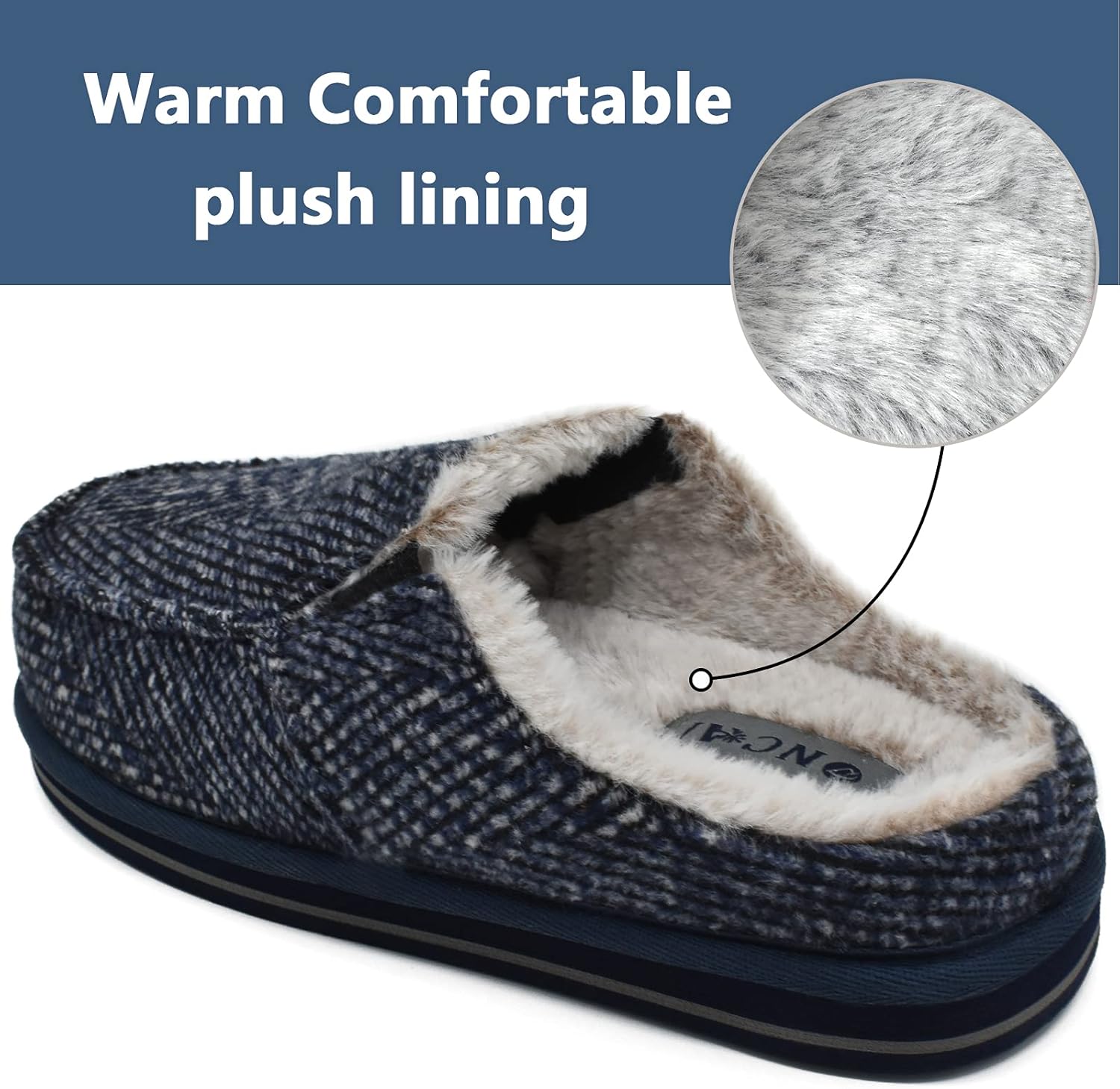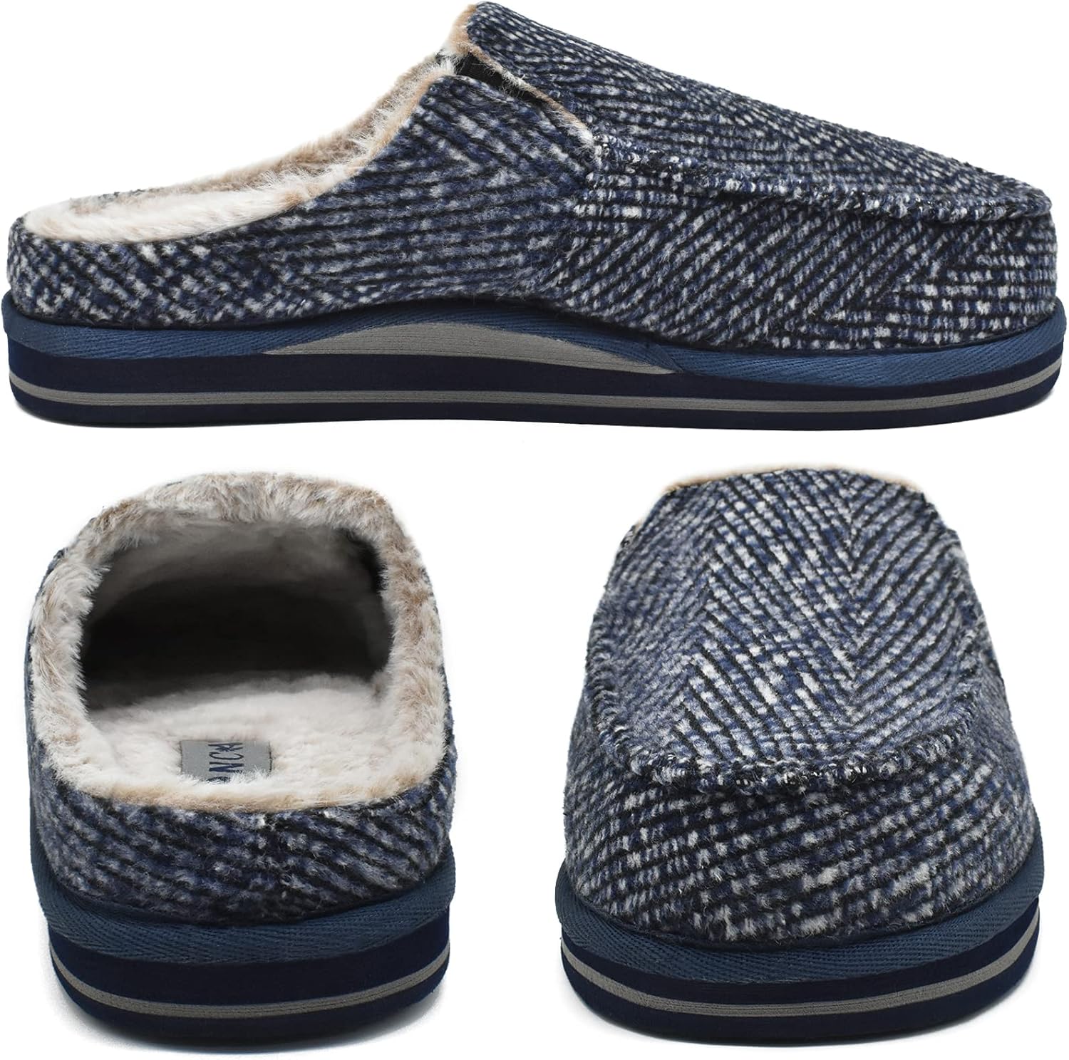 ONCAI Hausschuhe Herren Komfort Plüsch Pantoffeln Streifen Hüttenschuhe Wärme Flauschig Slipper mit