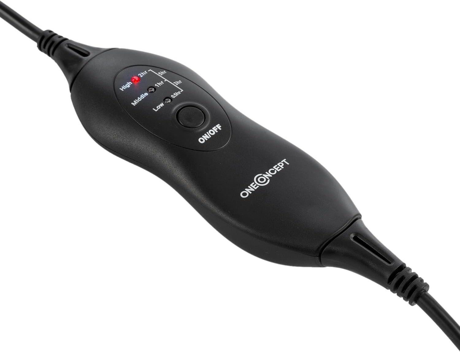 - PRAKTISCHE EXTRAS: Es lassen sich 3 unterschiedlich starke Heizstufen an der Kabelbedienung einstellen: niedrig, mittel und hoch: Durch nochmaliges Drücken der Ein-/Aus-Taste kann die Timerfunktion von 30 Minuten bis 5 Stunden zugeschaltet werden.