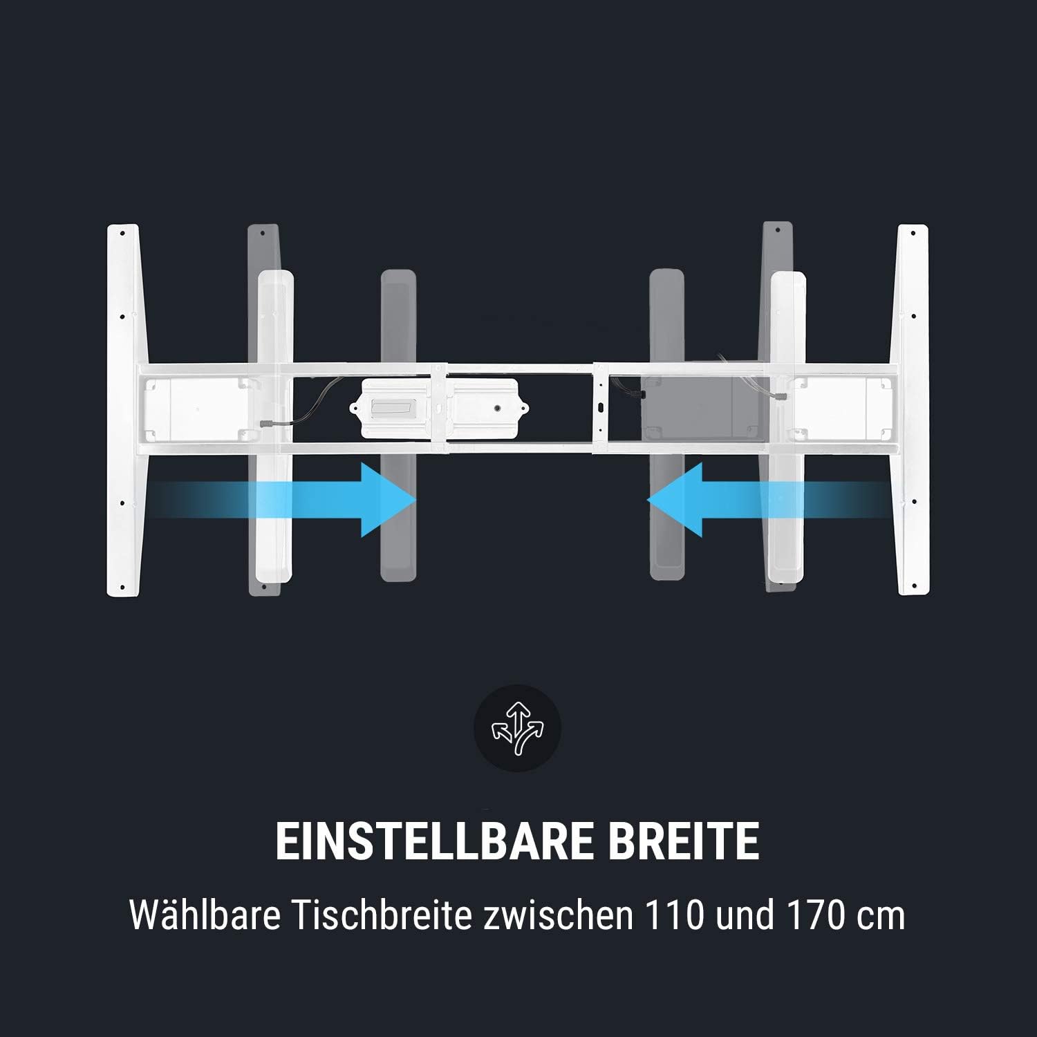 • ELEKTRISCHER SCHREIBTISCH: Du kannst den höhenverstellbaren Schreibtisch auch in der Breite zwischen 100 und 160 cm je nach Wunsch einstellen. Keine Sorge: Das extra stabile Tischgestell kann in jeder Breite ein Gewicht von bis zu 100 kg tragen.