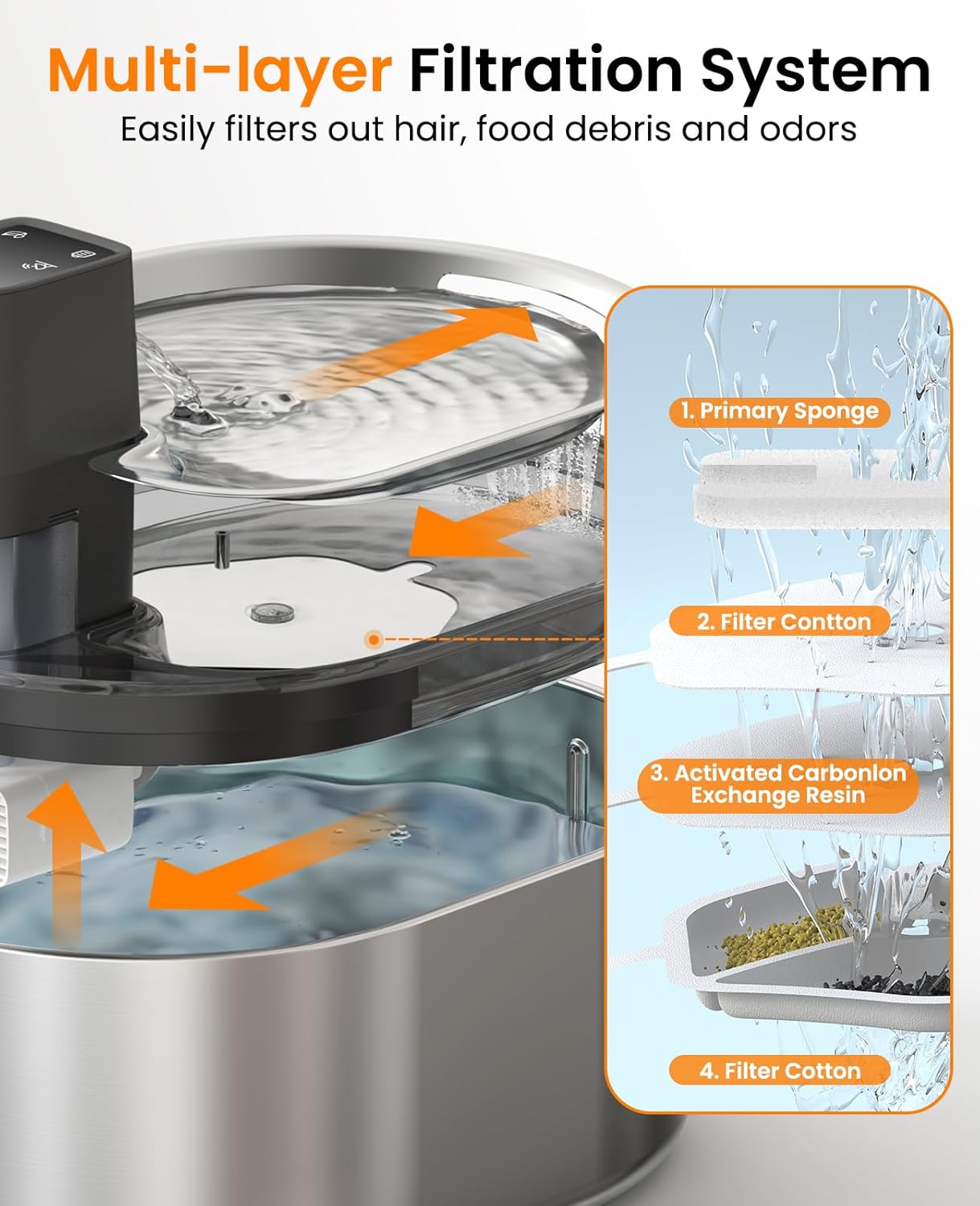 - 304-Edelstahl für Sauberkeit und Frische: Unser Trinkbrunnen für Katze kabellos besteht aus 304-Edelstahl und ist BPA-frei, was die Gesundheit Ihrer Katze schützt. Durch die dynamische Wasserzirkulation wird Sauerstoff hinzugefügt, was das Wasser