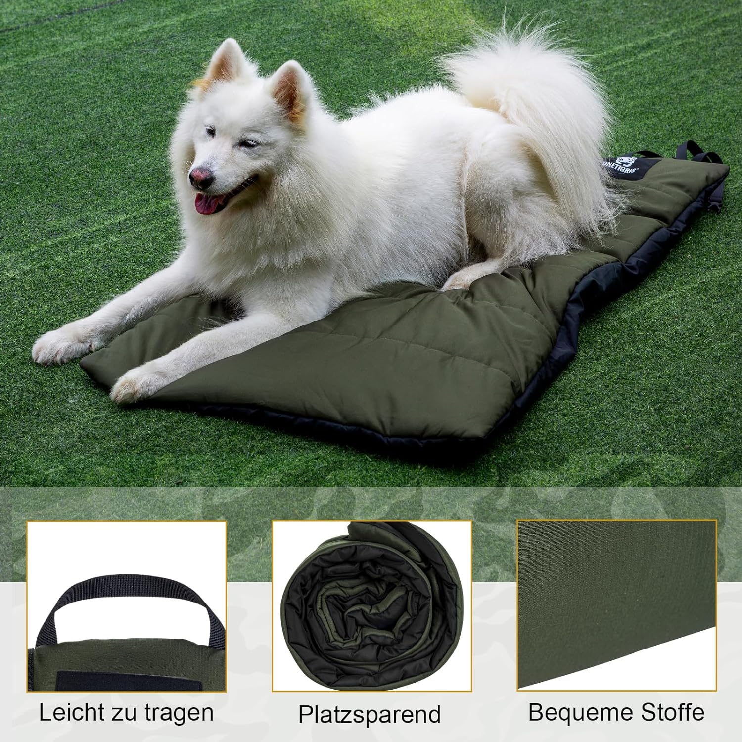 - 【Leicht zu lagern】Hundematte lässt sich mit einem verstellbaren Tragegurt zusammenfalten, der auch an den MOLLE-Gurten Ihrer Ausrüstung befestigt werden kann