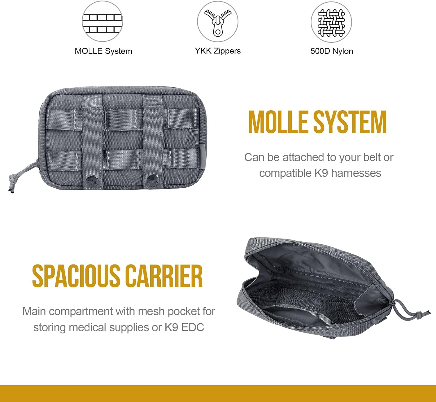 - 【2 Stück Futterbeutel für Hunde】Am taktischen MOLLE-Hundegeschirr können zwei Hundefutterbeutel befestigt werden, um das Reisen und die Verwendung zu erleichtern