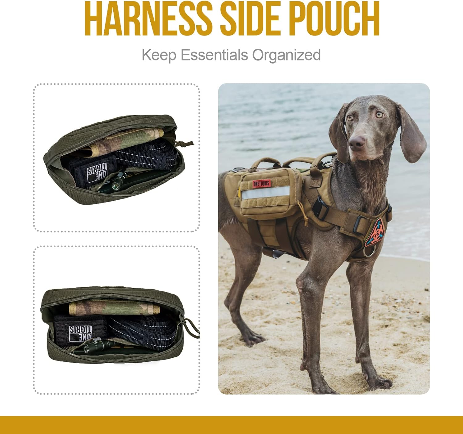 - 【2 Stück Futterbeutel für Hunde】Am taktischen MOLLE-Hundegeschirr können zwei Hundefutterbeutel befestigt werden, um das Reisen und die Verwendung zu erleichtern