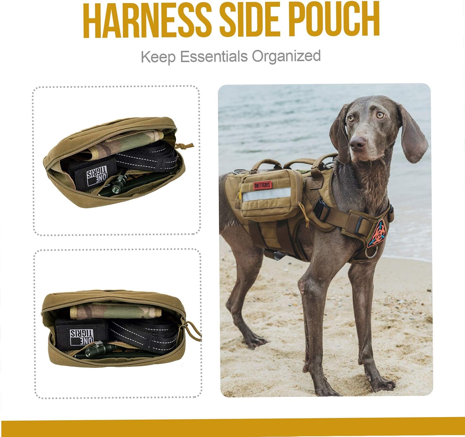 - 【2 Stück Futterbeutel für Hunde】Am taktischen MOLLE-Hundegeschirr können zwei Hundefutterbeutel befestigt werden, um das Reisen und die Verwendung zu erleichtern