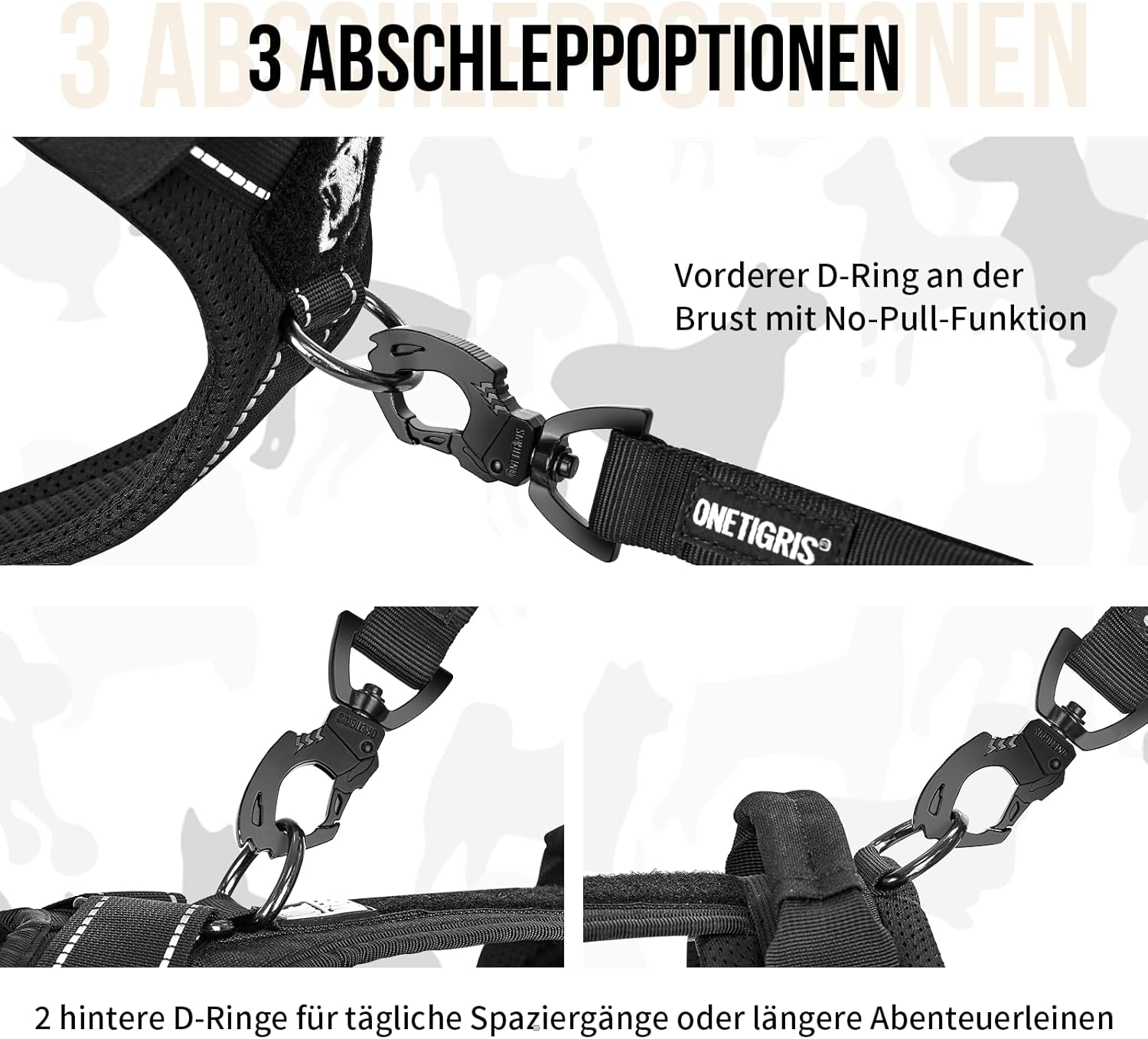 - 【No-Pull D Ringe】Brustgeschirr mit 3 D-Ringe für verschiedene Leinenoptionen, der vordere Brust-D-Ring bietet keine Zugfunktion, die 2 hinteren D-Ringe sind für tägliche Spaziergänge oder längere Erkundungsleinen