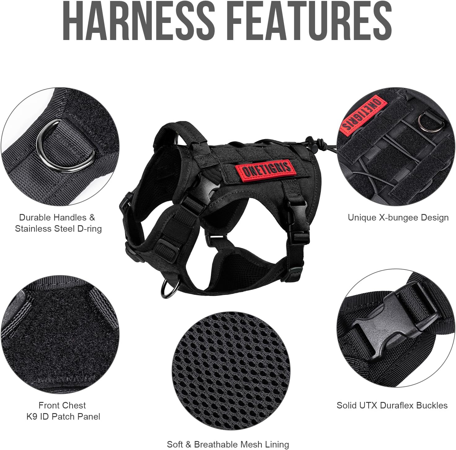 - Onetigris Hundegeschirr im Militärstil: Das grosse Onetigris Hundegeschirr verfügt auf jeder Seite über zwei Gurte sowie ein Hook & Loop-Panel zur einfachen Befestigung von Beuteln oder ID-Panels; das Hundegeschirr ist nicht dafür ausgelegt, schwere