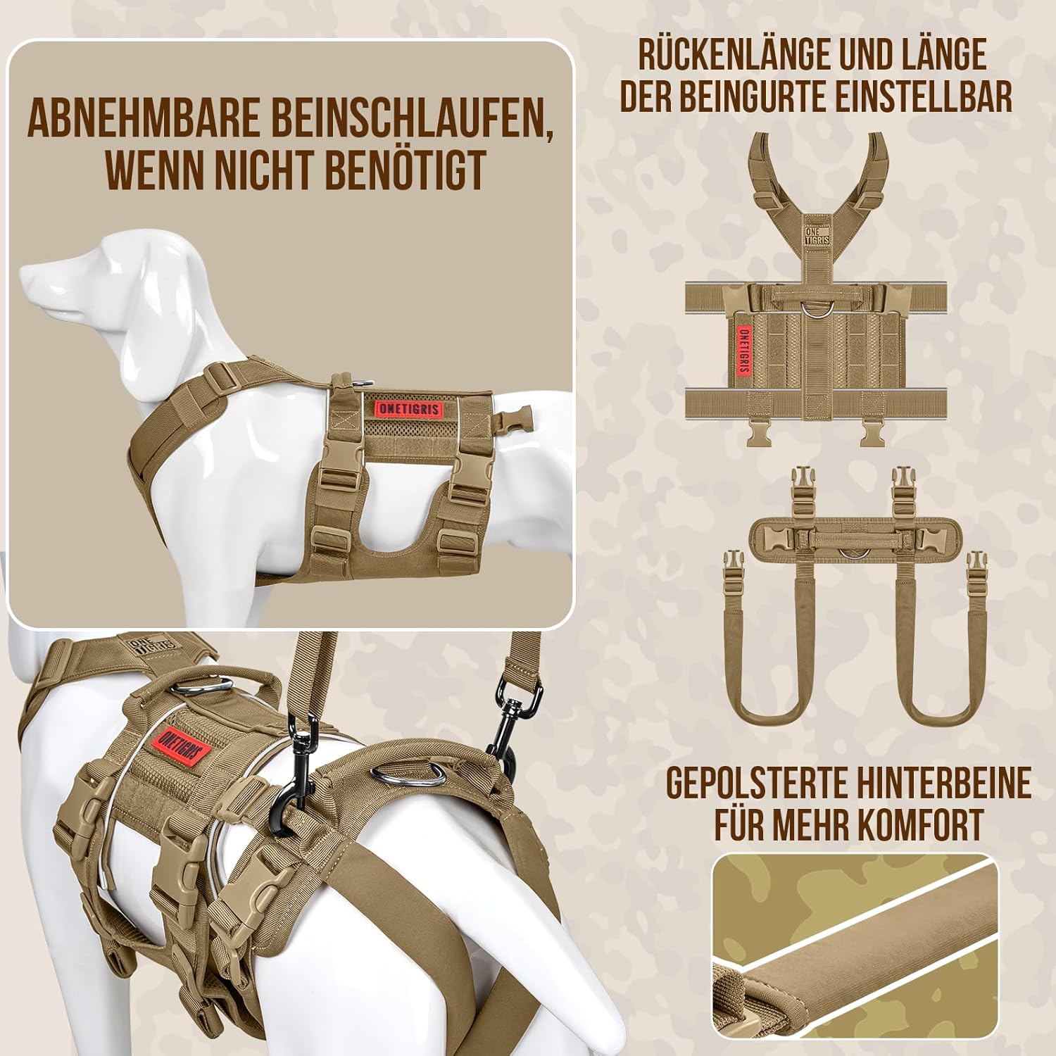- 【Einstellbar】Das Geschirr und die Beinstütze sind durch Schnallengurte verbunden, die für die Verwendung mit verschiedenen Hunden verlängert oder verkürzt werden können (oder die hintere Stütze kann vollständig entfernt werden); ausserdem gibt