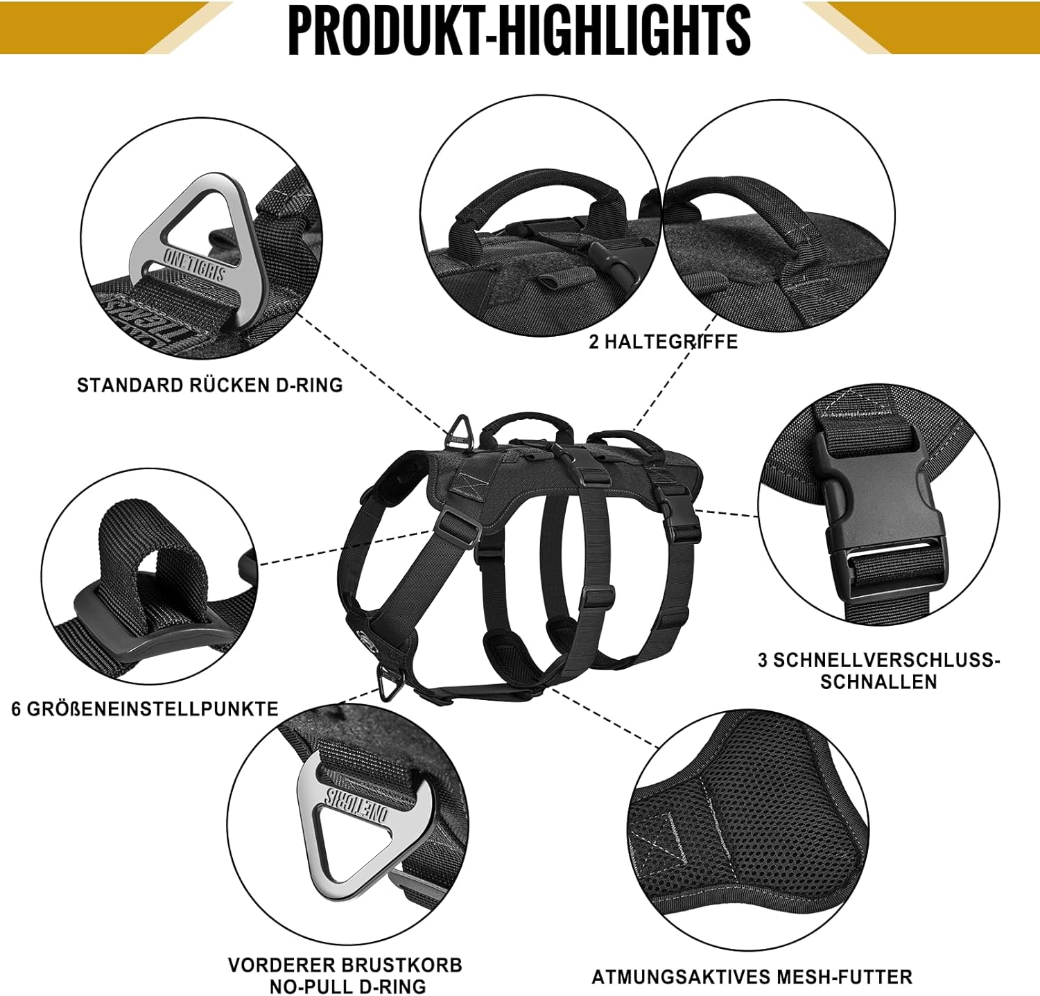 - 【Stark & Leicht】Hundegeschirr aus 1000D-Nylon für Langlebigkeit und Schmutz-/Wasser-/Abriebfestigkeit, mit robustem Nylongurtband für eine minimalistische, ergonomische Passform