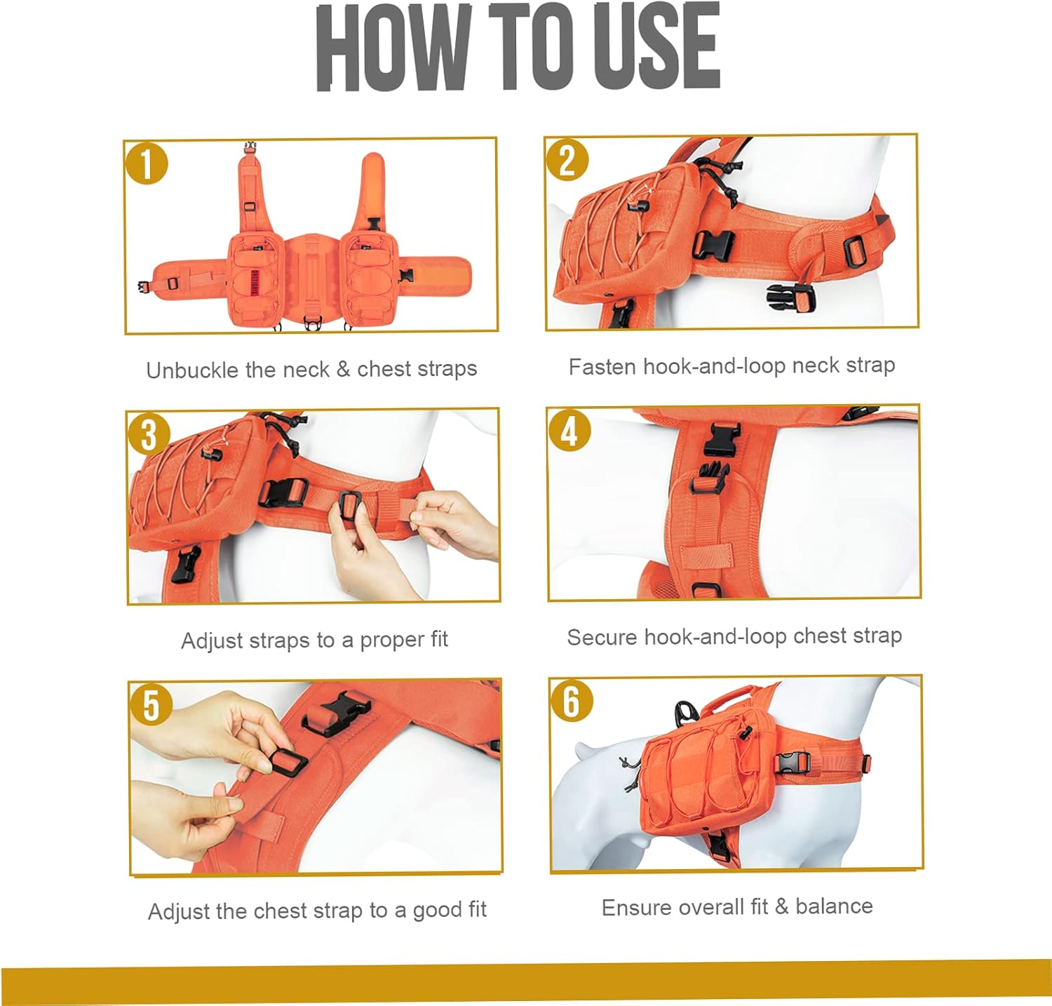 - Klettband-Bauchgurt mit UTX-Duraflex-Schnallen, damit die Packung an Ort und Stelle bleibt und Hals und Bauch des Hundes gut umschliesst.
