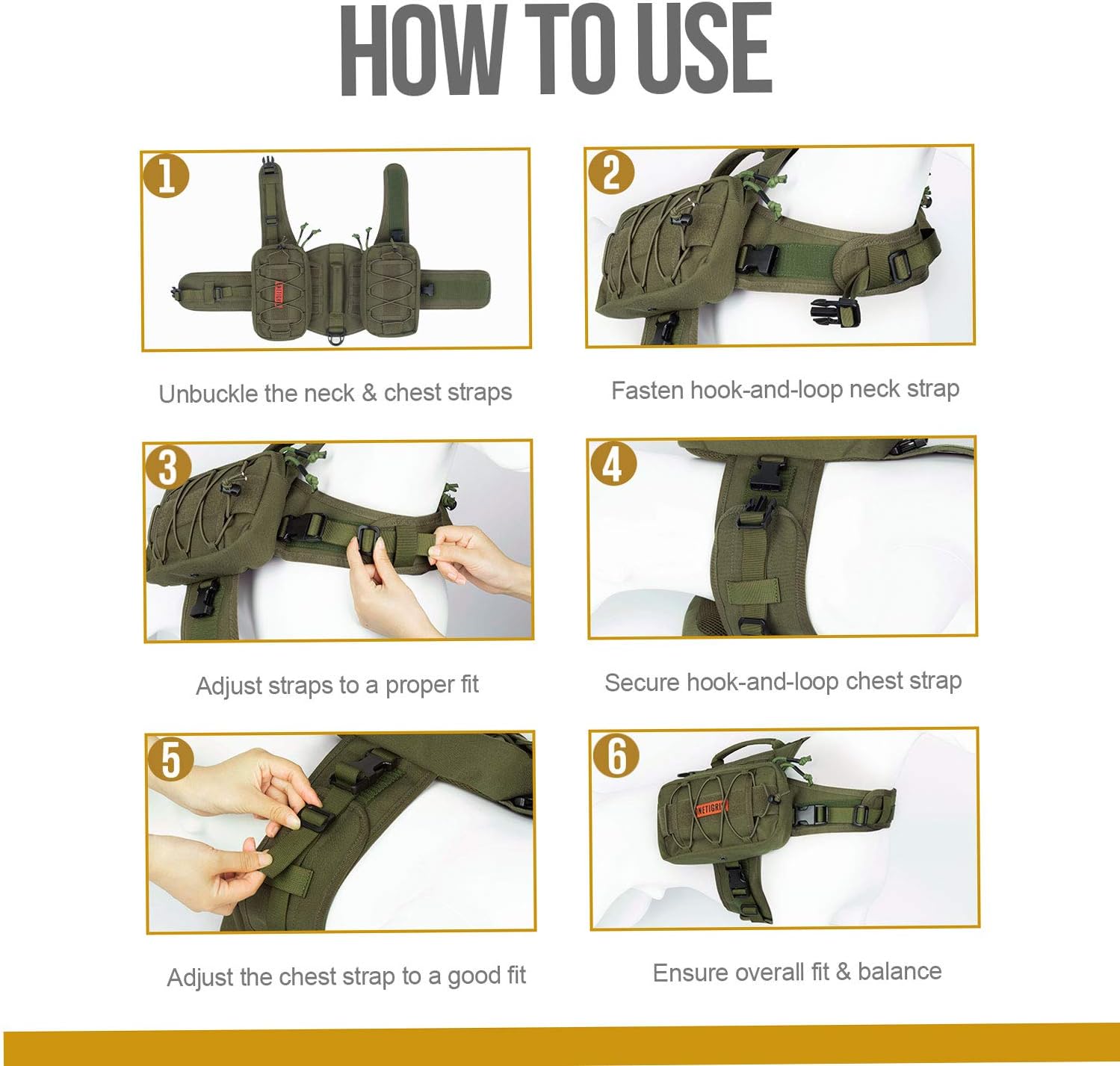 - Verstellbare Gurte für verschiedene Hunderassen und Grössen; Zwei 2 "x 7,5" -Schleifen für Namensfelder und Moral-Patches