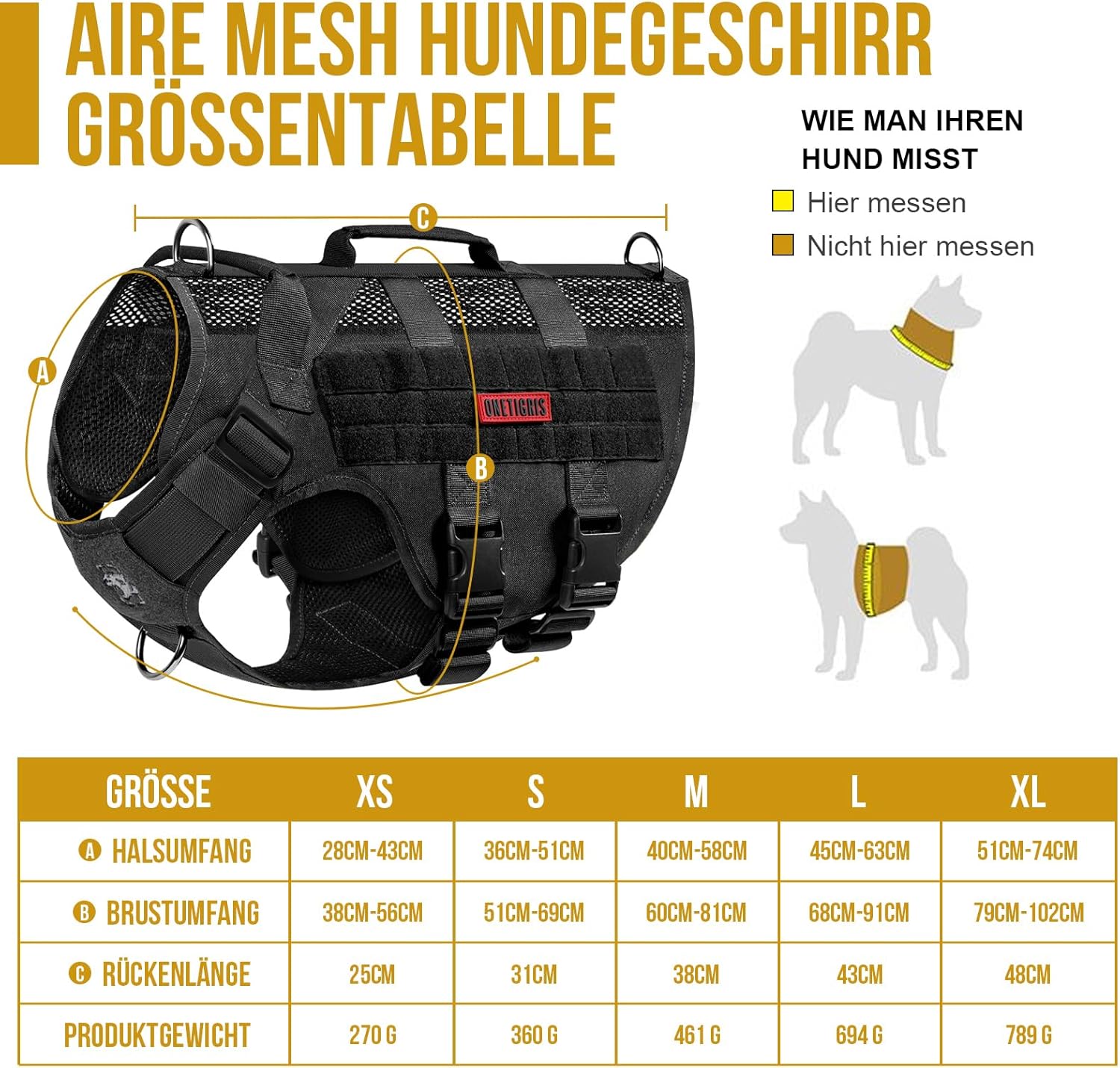 - 【Molle/Griffe】Molle-Design auf beiden Seiten für MOLLE-kompatible Zubehörteile wie Leckerli-Taschen, Kotbeuteltaschen, Service-Hunde-Kits, Militär-Patches und Namensschilder. 2 gepolsterte Haltegriffe mit verstärkter Naht. Nützlich zum Ein- und