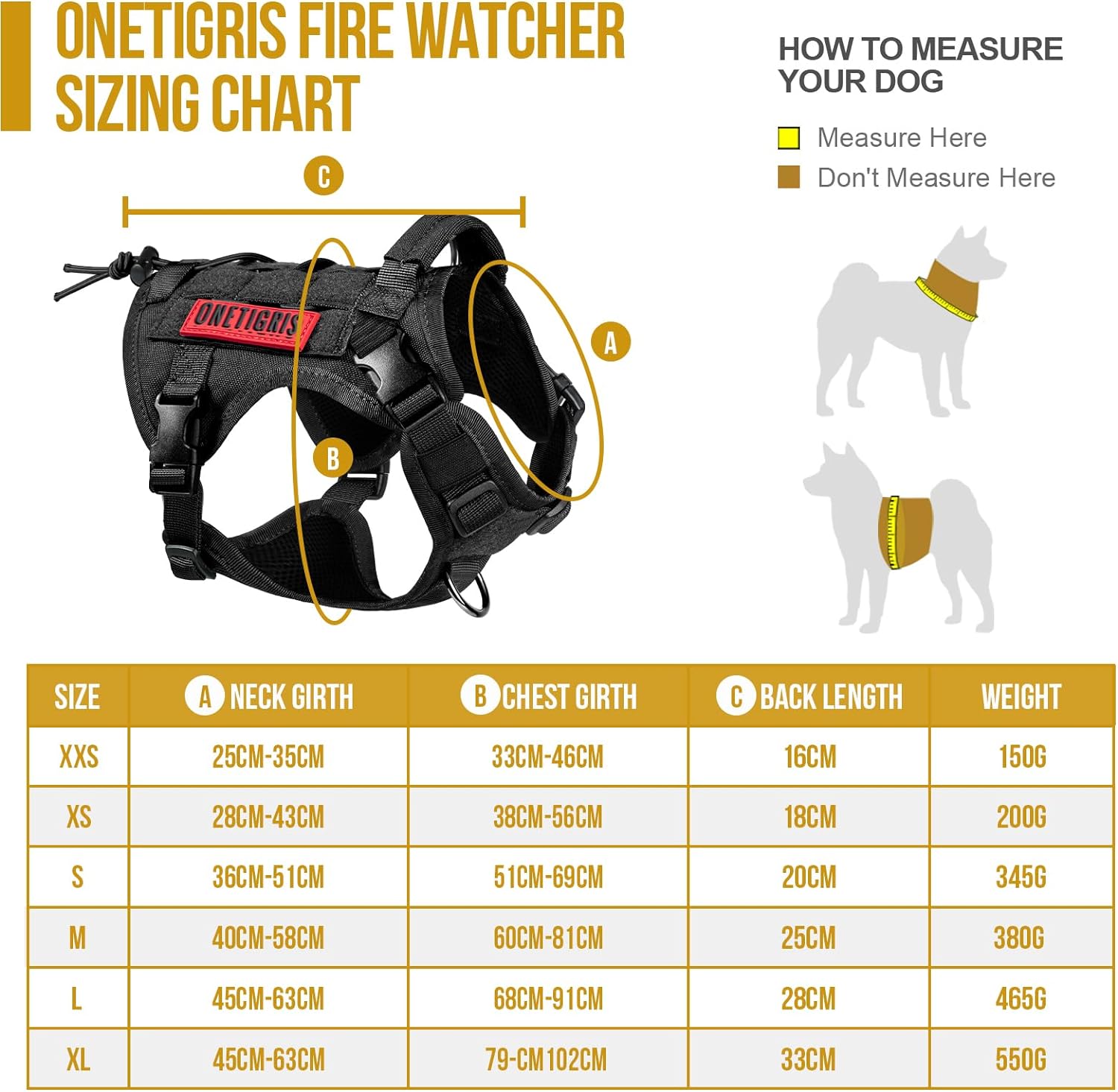 • Onetigris Hundegeschirr im Militärstil: Das grosse Onetigris Hundegeschirr verfügt auf jeder Seite über zwei Gurte sowie ein Hook & Loop-Panel zur einfachen Befestigung von Beuteln oder ID-Panels; das Hundegeschirr ist nicht dafür ausgelegt, schwere