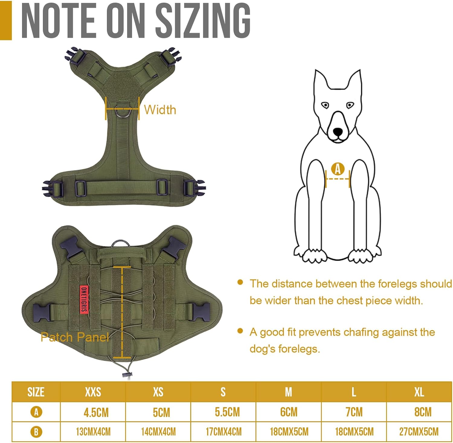 - Onetigris Hundegeschirr im Militärstil: Das grosse Onetigris Hundegeschirr verfügt auf jeder Seite über zwei Gurte sowie ein Hook & Loop-Panel zur einfachen Befestigung von Beuteln oder ID-Panels; das Hundegeschirr ist nicht dafür ausgelegt, schwere