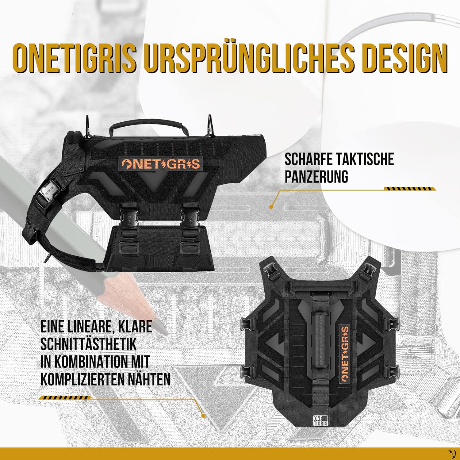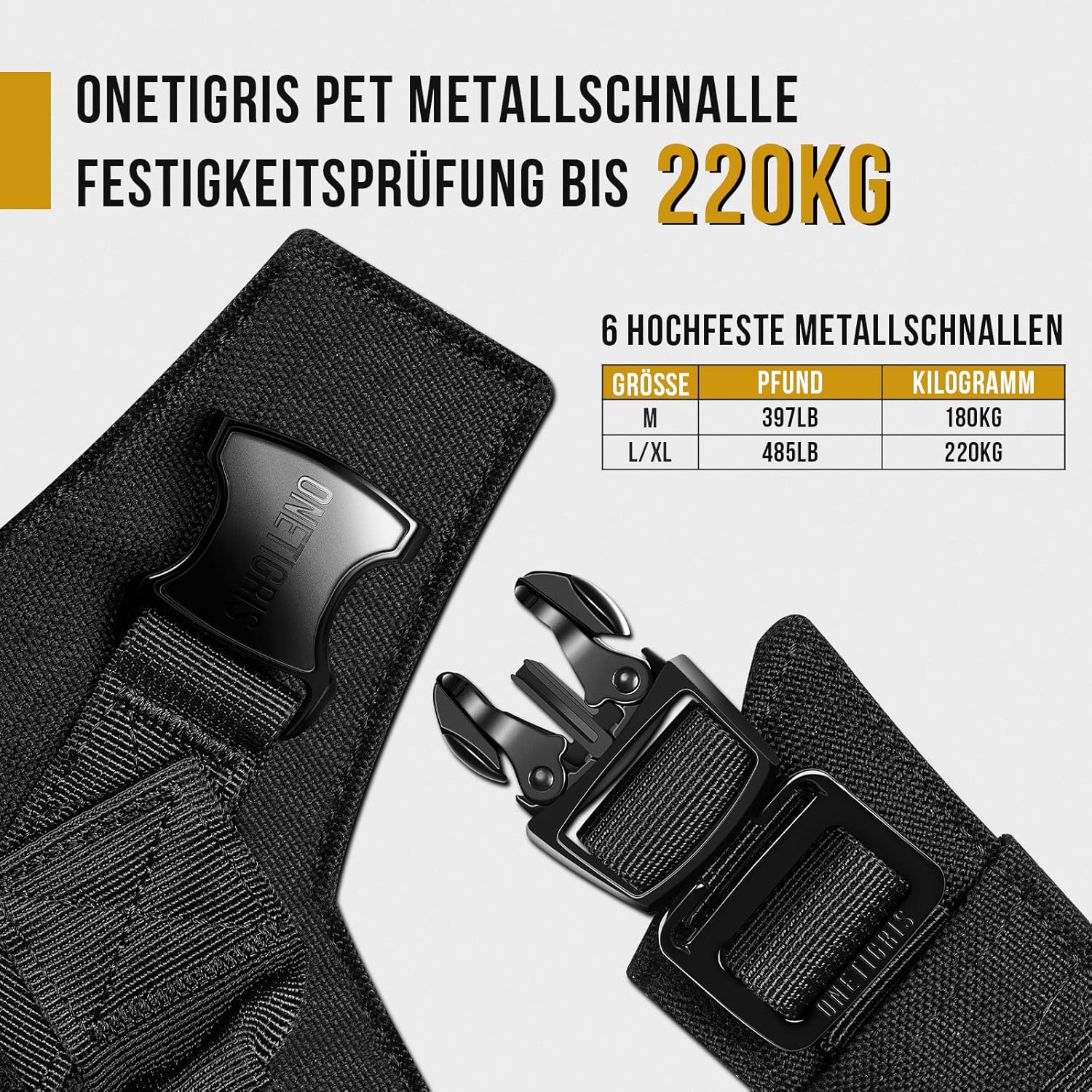 OneTigris X Armor Taktisches Hundegeschirr, Sicherheitsgeschirr mit Vollmetallschnalle und D-Ring, H