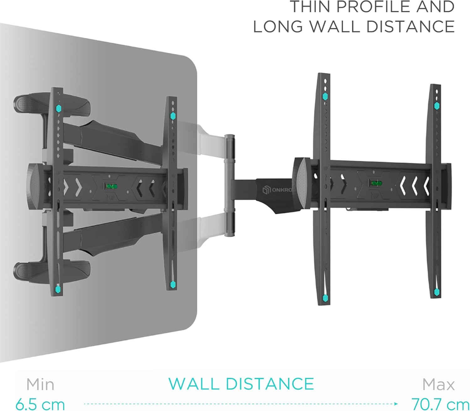 - TV AUFHÄNGUNG SCHWENKBAR | Fernseher Aufhängung ist um 180° schwenkbar und 8° neigbar | TV Wandhalterung lang ist von 65 bis 707 mm ausziehbar | Integrierte Wasserwaage hilft, die TV Halterung schwenkbar gleichmässig an der Wand zu befestigen | Nach