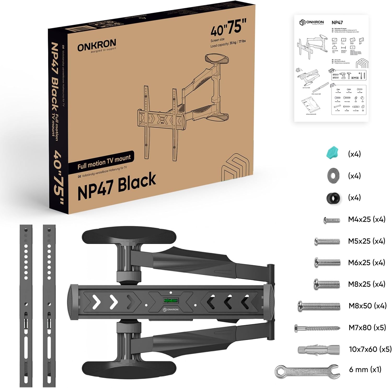 - FERNSEH HALTERUNG WAND | ONKRON NP47-B neig- & schwenkbare TV Wandhalterung ausziehbar passt für 40 - 75 Zoll Fernseher , Monitore und Monoblöcke | Halterung Wand Fernseher trägt bis zu 35 kg | TV Wandhalter ist mit 100x100 - 400x400 VESA kompatibel |